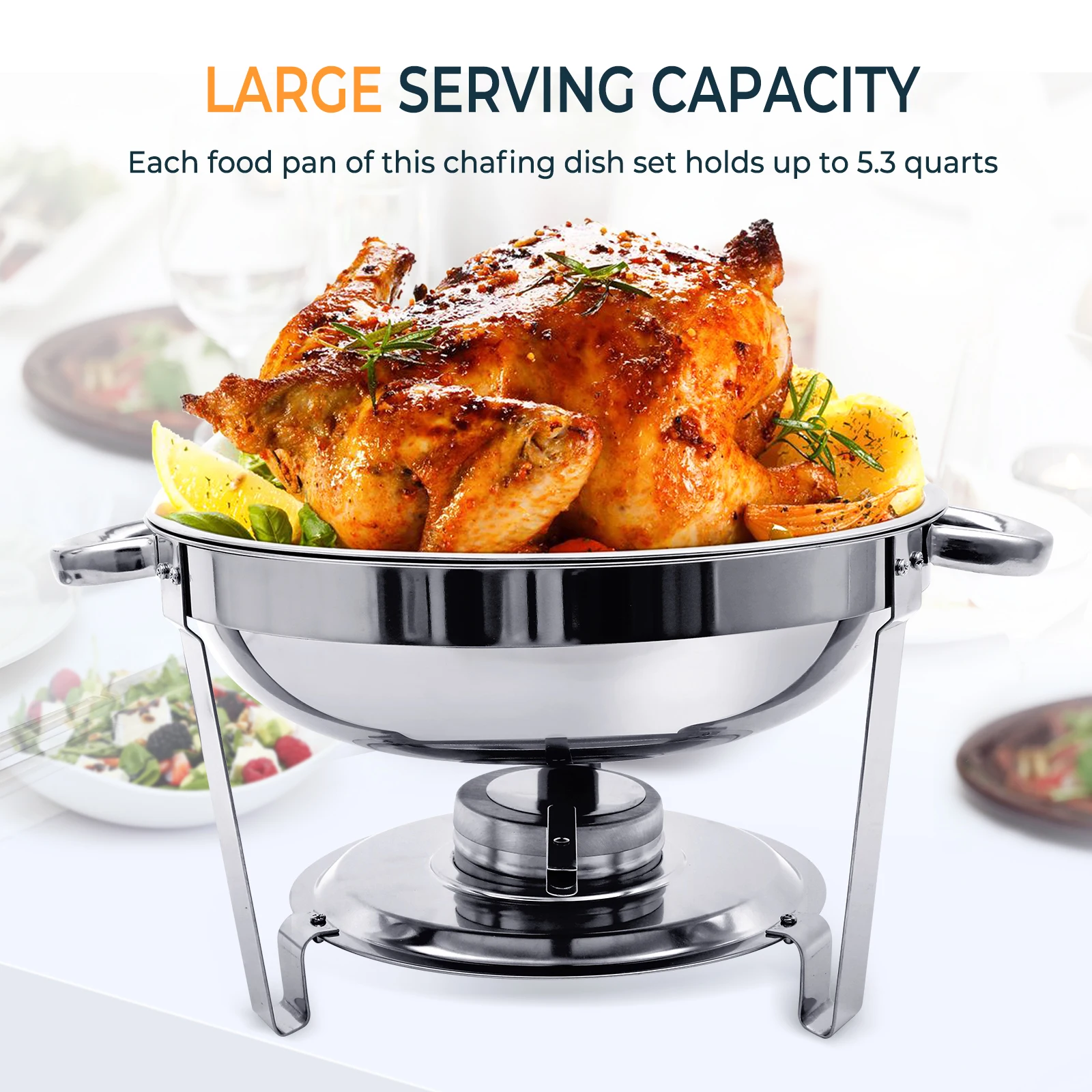 1/2/4 Pack Stainless Steel Chafing Dish Buffet Set 5L Round Chafers Buffet Food Warmers BBQ Party 316 For Parties Events Wedding