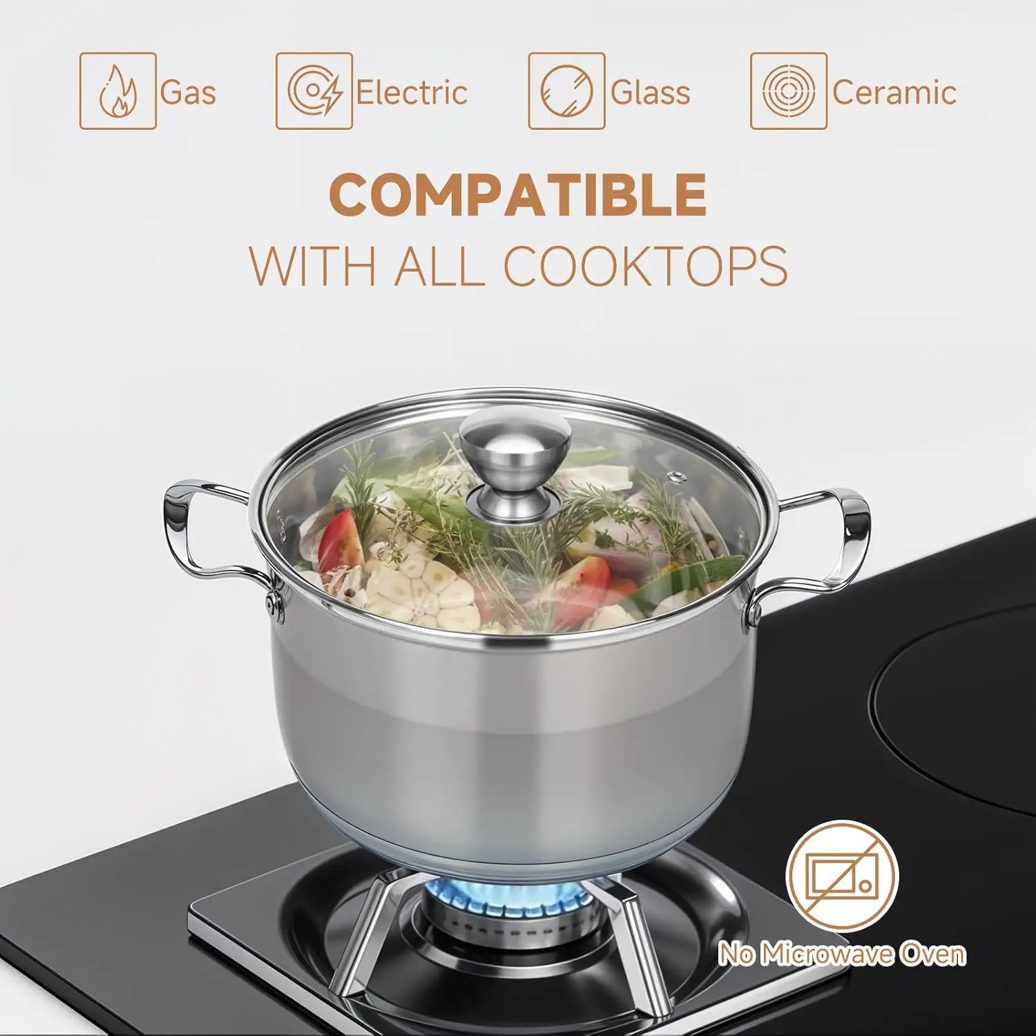 12 Quart Stainless Steel Stock Pot with Lid, Nonstick Thick Base for Cooking Pasta, Soup, Stew and More