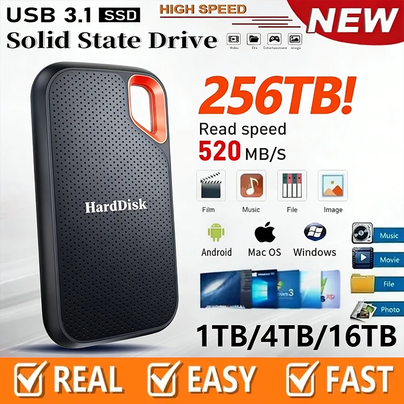 128TB External Solid State Drive Type-C USB 3.1 Plug and Play External Hard Drives Portable SSD Hard Disks For Andriod Windows