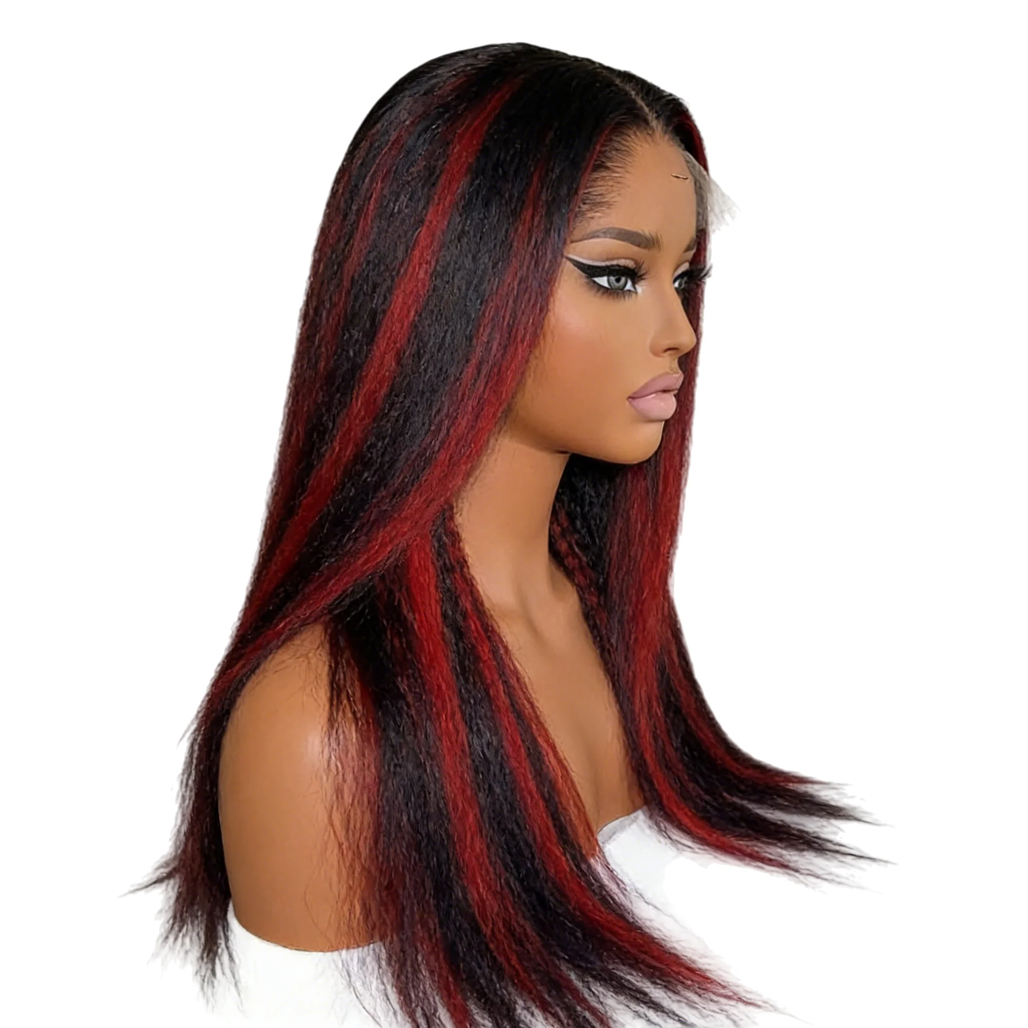 13×6 Kinky Straight Lace Front Human Hair Wig Black with Red Highlight Natural Hairline 13×4 HD Lace Wig for Women 250% Density