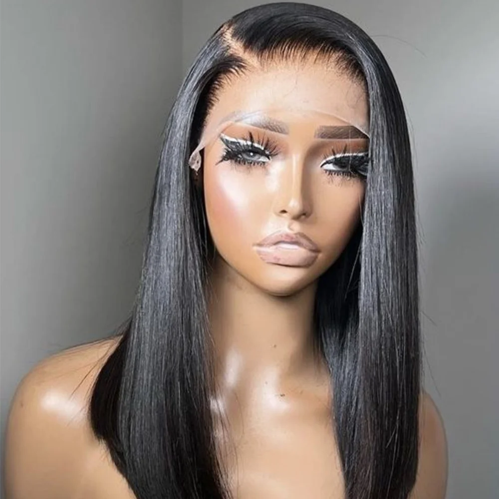 13×6 Short Bob Straight Brazilian Hair 200% Density HD Transparent Lace Full Lace Frontal Wigs 100% Real Human Hair For Women