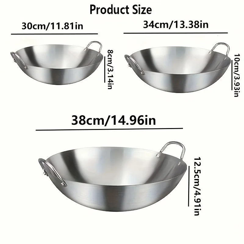 1pc Large Stainless Steel Wok, Uncoated Thick High-Quality Durable Chef’S Pan with Dual Handles, Easy to Clean for Commercial