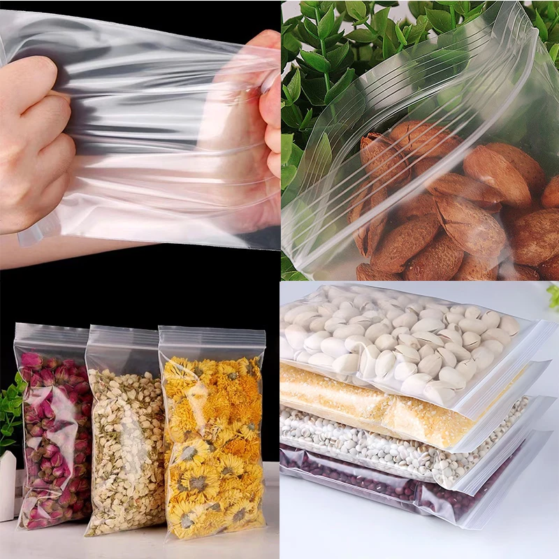200/100PCS Transparent Zip Bags Food Jewelry Vacuum Storage Bag Plastic Thicken Reclosable Poly Bag Kitchen Organization Package