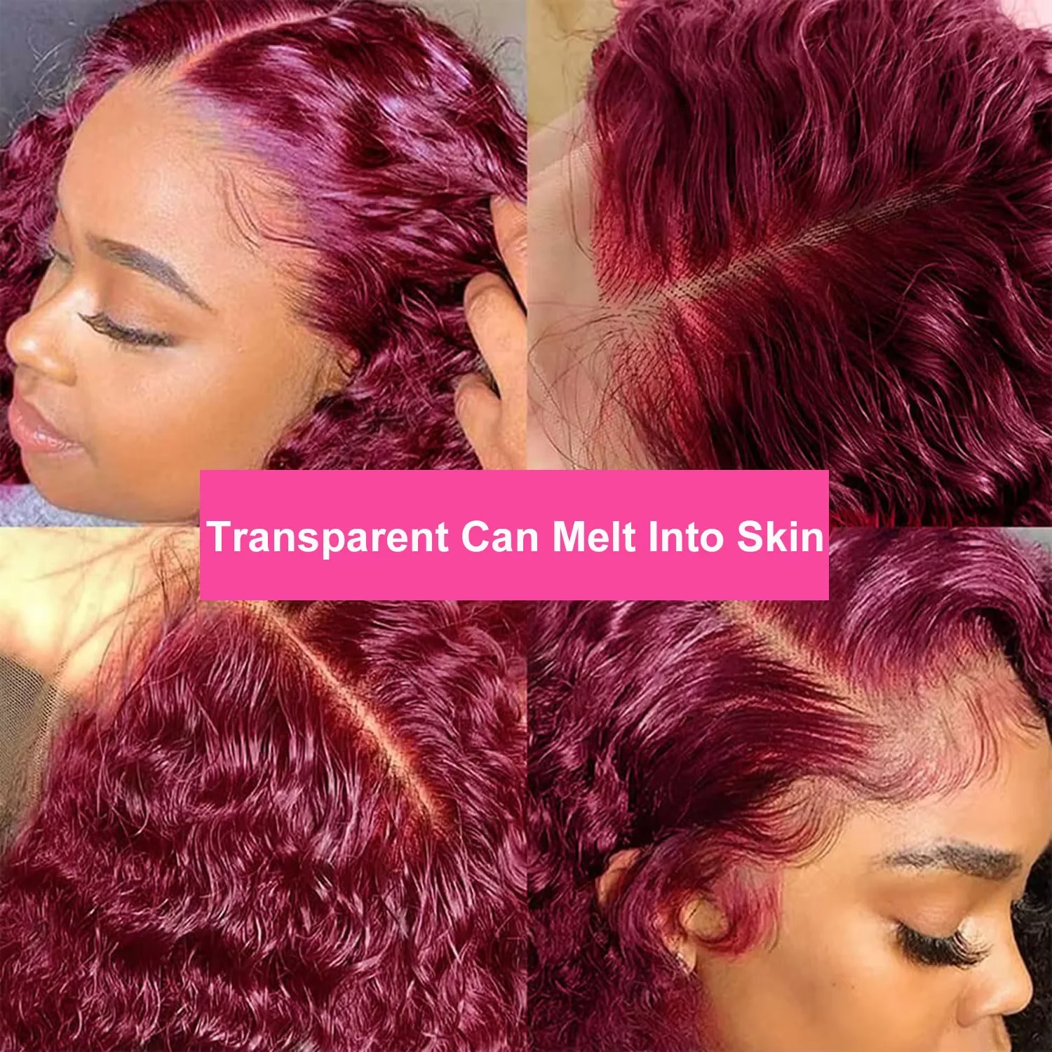 200% Burgundy 13×6 HD Wet And Wavy Lace Frontal Human Hair Wig Brazilian 40 Inch Colored 99j Curly Wigs Deep Wave Lace Front Wig