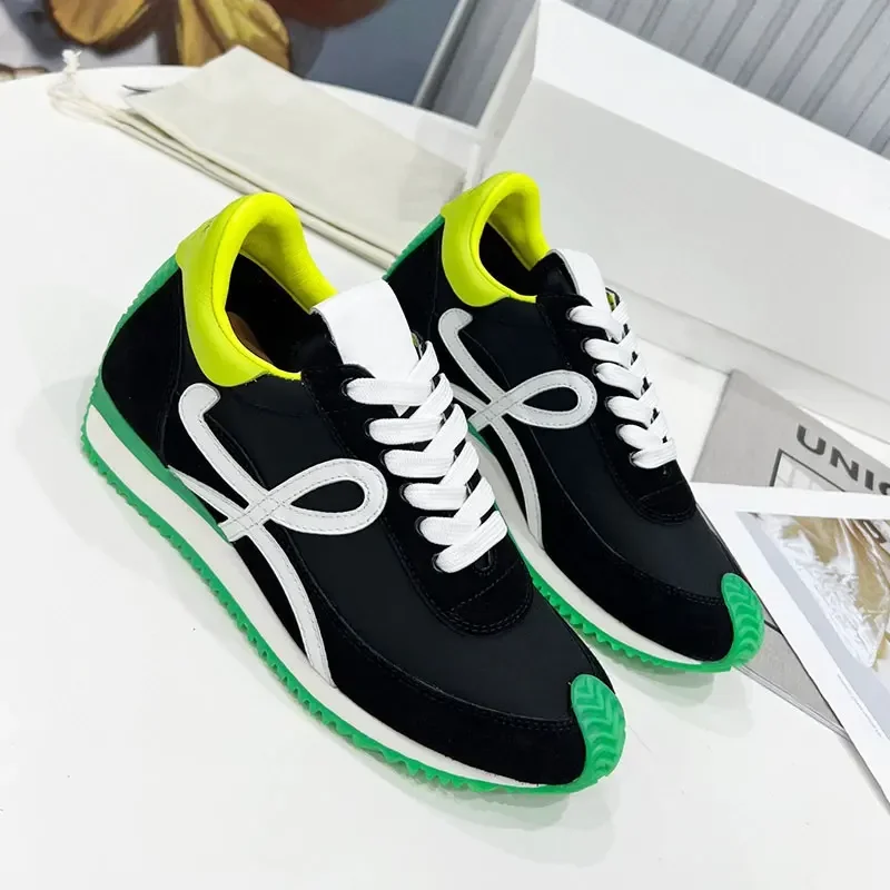 2025 Fashion Men Trainers Shoes Designer Sneaker Flow Runner In Nylon Lace Up A Soft Rubber Upper Honey Rubber Waves Sole