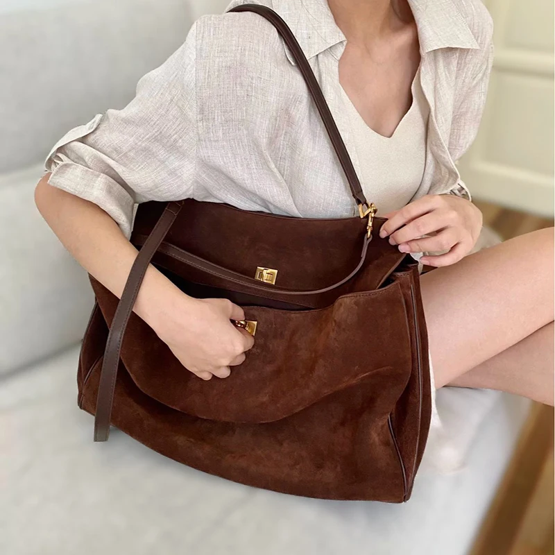 2025 Winter New Rodeo Women Handbags Cowhide Suede Women Totes Luxury Brand Fashion Gold Buckle Shoulder Bags Lady Trend Satchel
