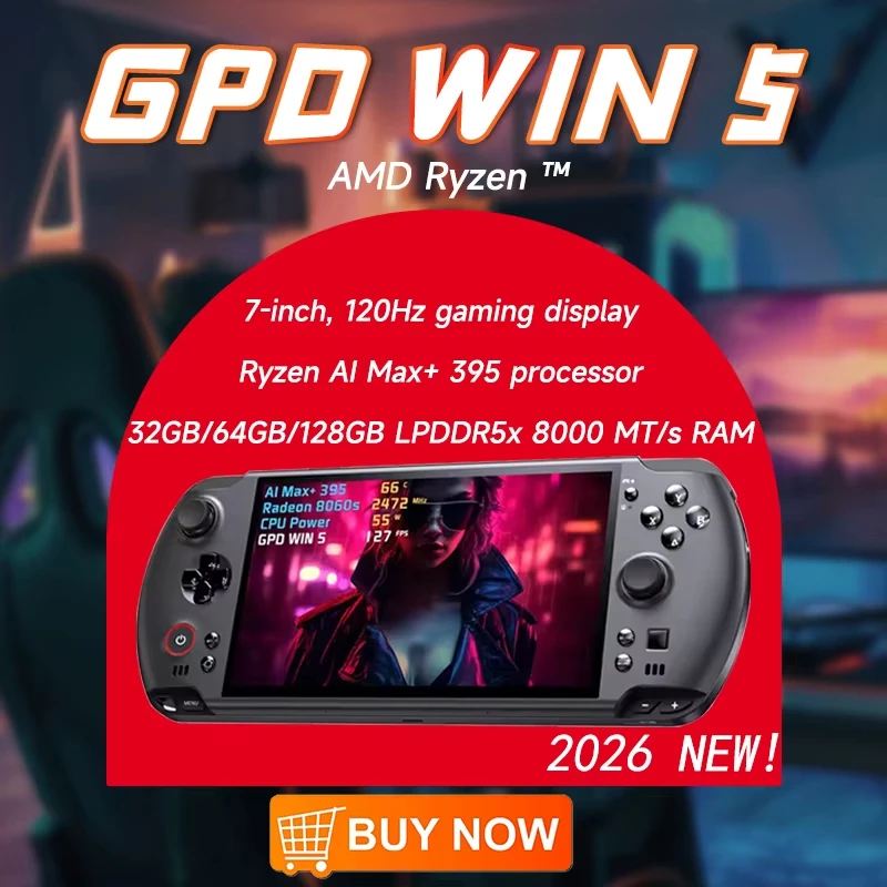 2026 GPD WIN 5 Game Machine AMD Ryzen AI Max 385 Processor 7 inch 120Hz 32GB/64GB LPDDR5x 8000MTs Mini Video Game Consoles