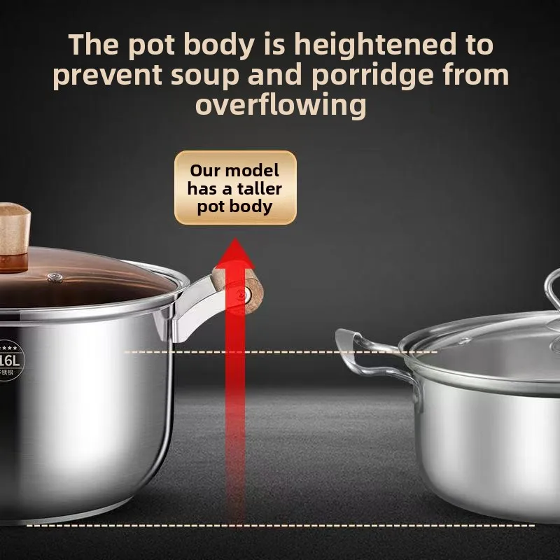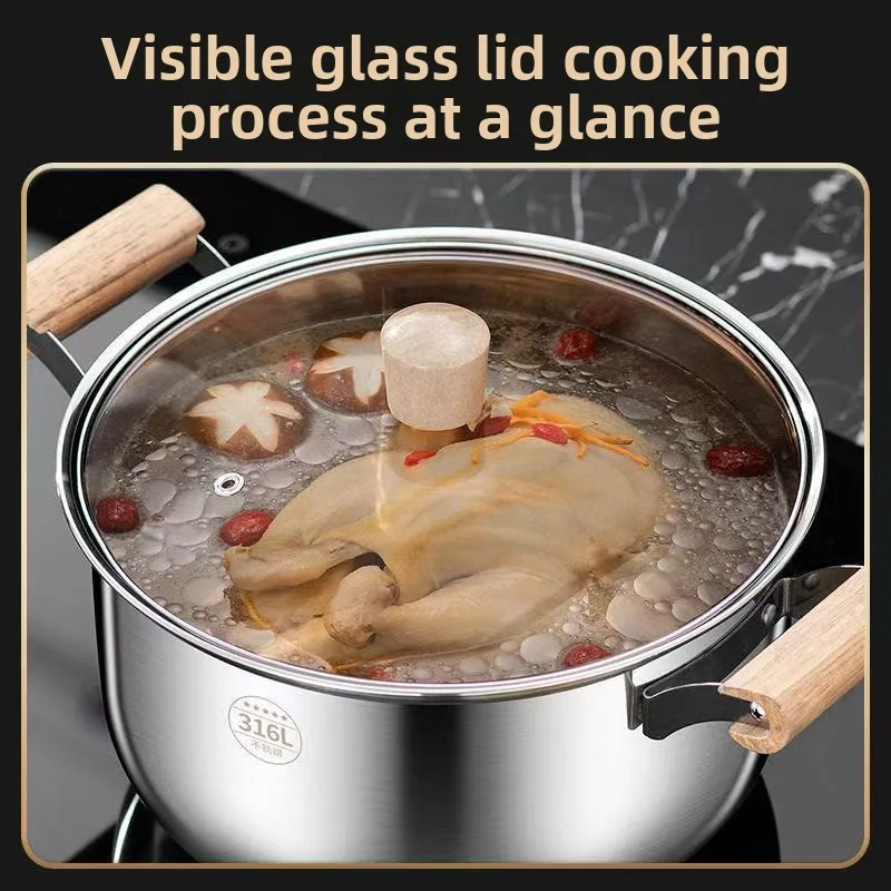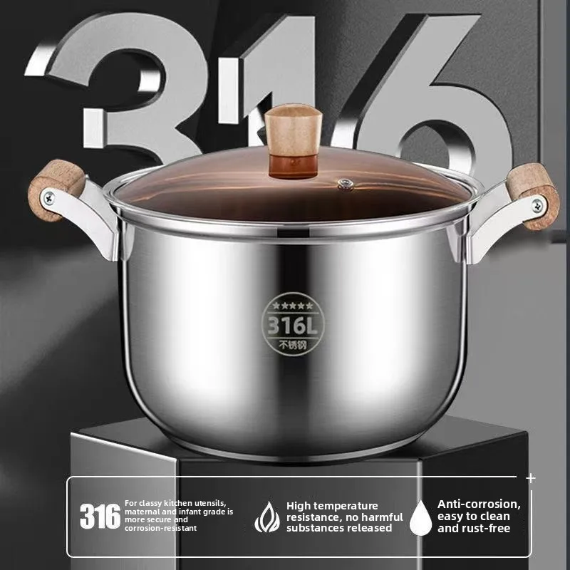 316 thick food grade stainless steel soup pot, household milk pot, steamer, gas stove, induction cooker, universal