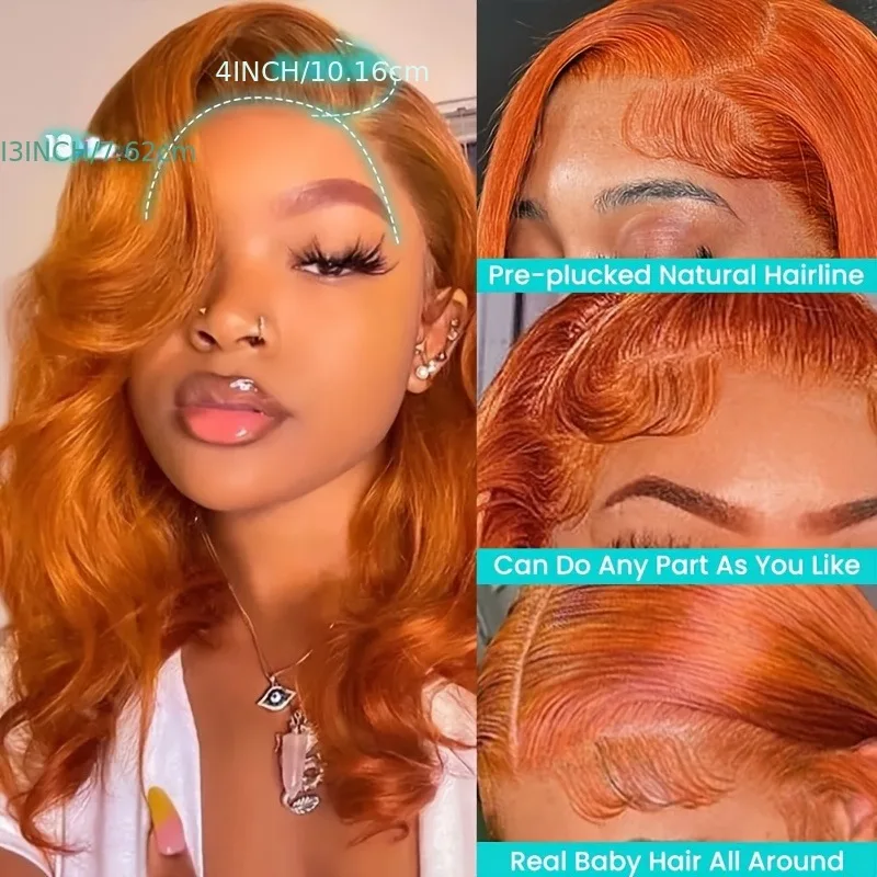 350 Ginger Orange Human Hair Wig Body Wave Pre Plucked With Baby Hair Lace Front Wigs 13×4 Ear To Ear Lace Body Wave Lace Wigs
