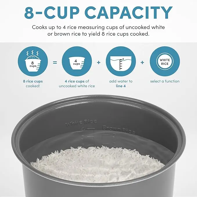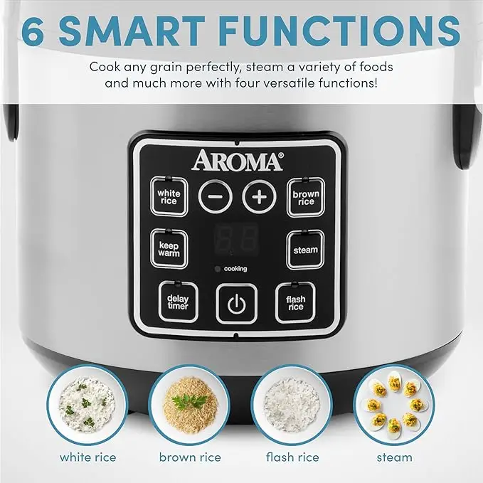 4-Cup Digital Rice Cooker with Steamer – Stainless Steel Multi-Cooker for Rice, Grains & Steam, 2 Qt