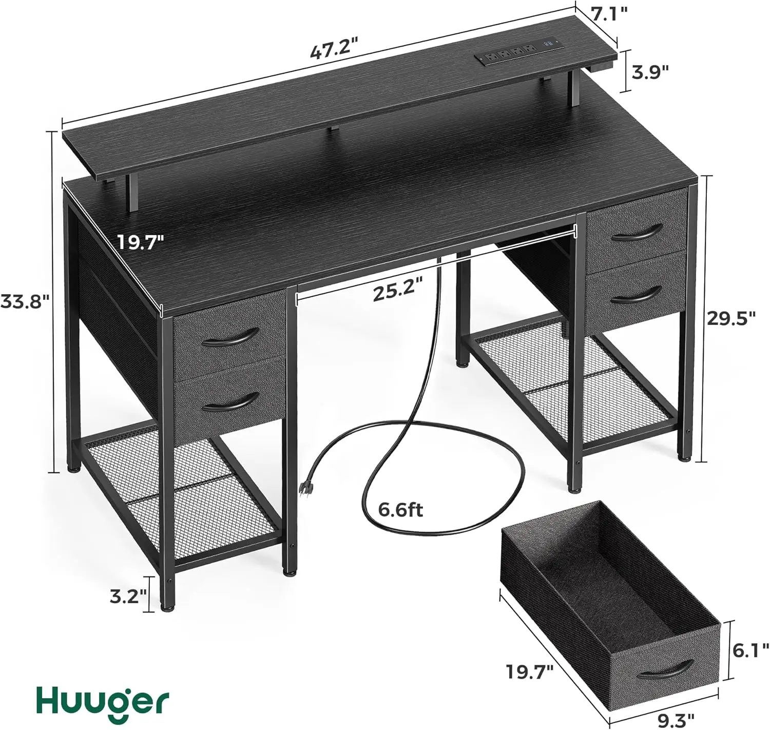 47-Inch Gaming Desk with LED Lights, Power Outlets, and 4 Drawers for Home Office and Bedroom Use in Black
