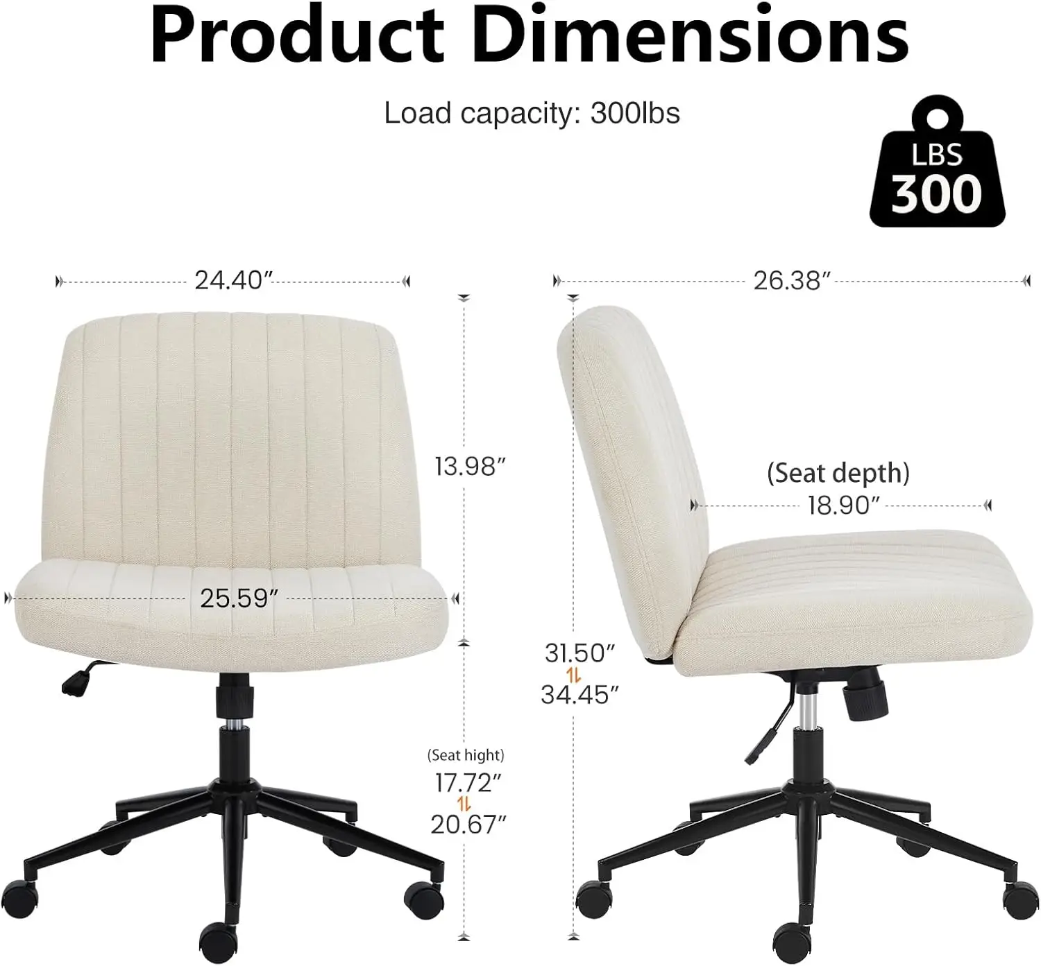 Adjustable Swivel Desk Chair with Wheels, Wide Seat for Cross-Legged Sitting, Comfortable Home Office Task Seating