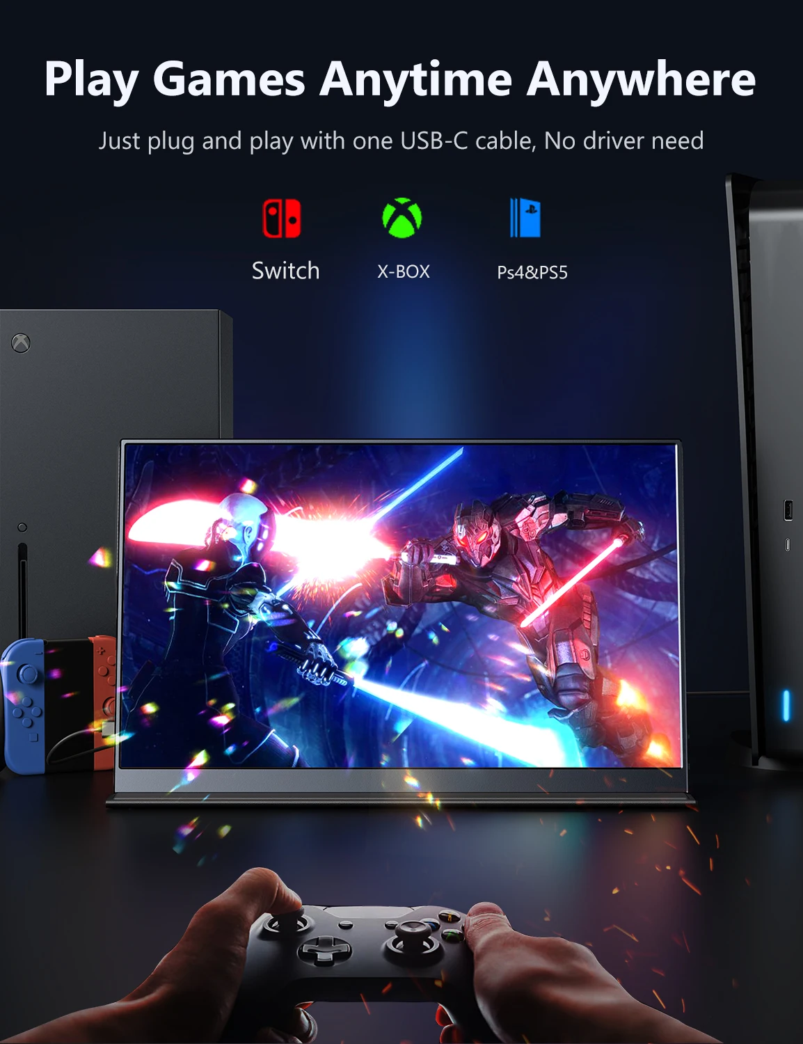 Amoudo 15.6 Inch Portable Monitor1920 x 1080P Second Screen FHD Lightweight Thin USB Type-C Mini HDMI Extend Screen for PS4/5 X
