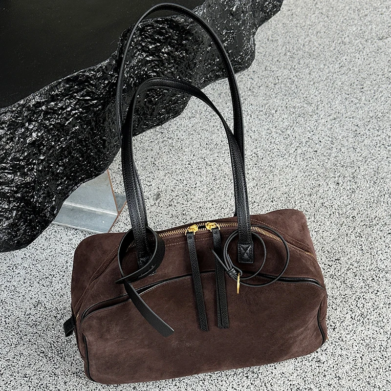 Autumn winter Women’s Cow Genuine Leather Tote Bag suede commuting Cowhide Handbags Large Capacity Designer Luxury velvet Bags