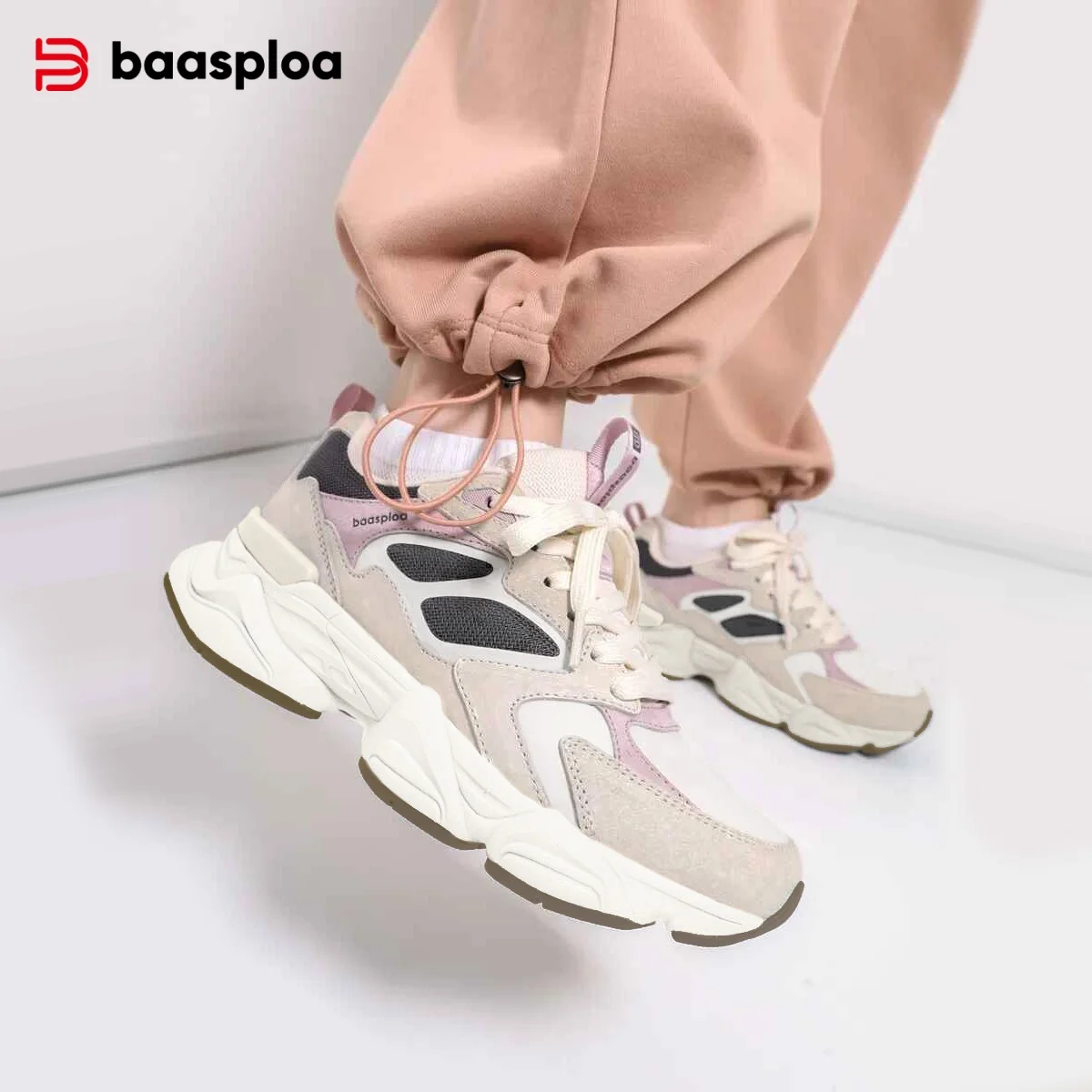 Baasploa Women Casual Shoes Comfort Leather Walking Sneakers For Women Solid Color Fashion Sport Shoes Non-Slip Hight Increase