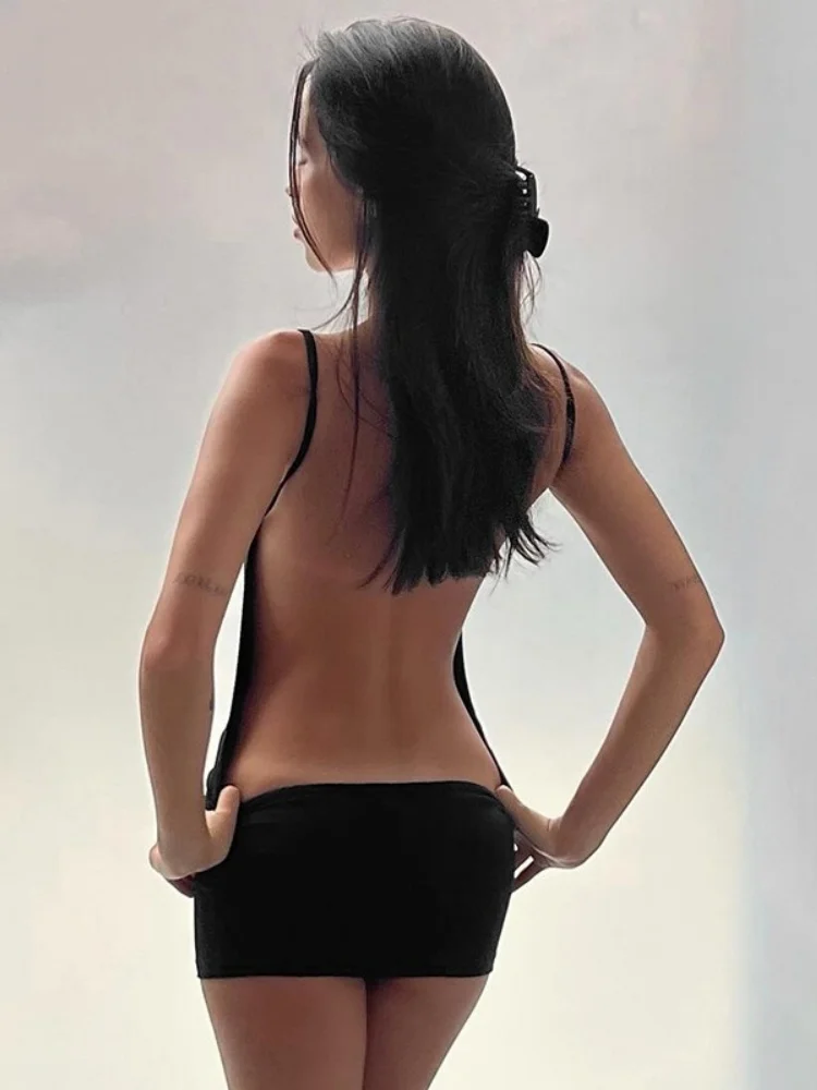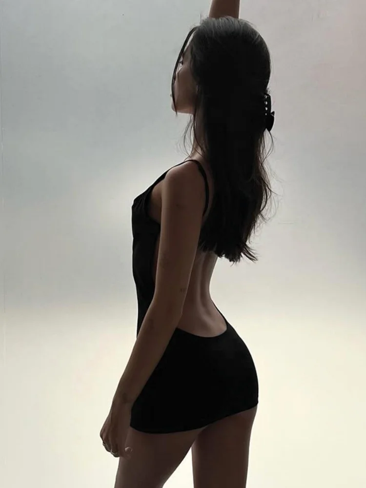 Backless Black Dress For Women Summer Clothing Y2k One Piece Sexi Night Dress Hot Club Outfits Spaghetti Strap Vestido Feminino