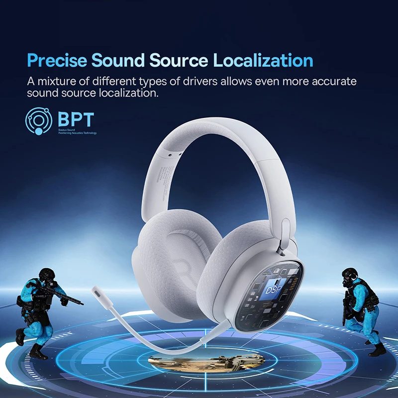 Baseus GH02 Wireless Gaming Headsets with Mic Headphones Bluetooth 5.3 40mm Driver 2.4G/Wireless/Cable RGB Overhead Headphone