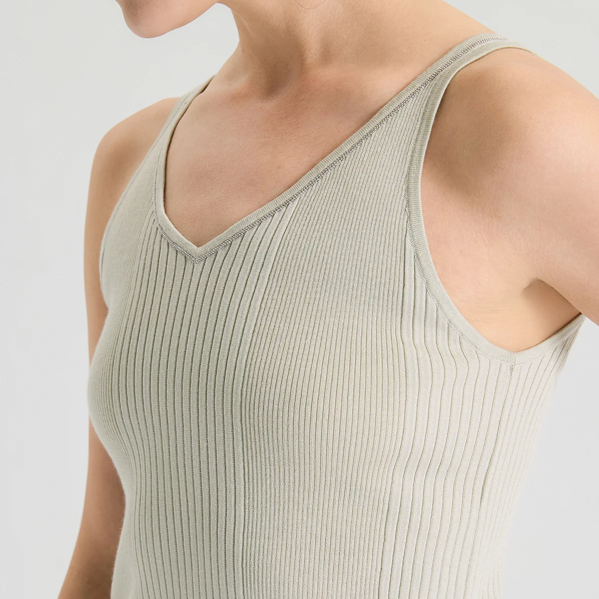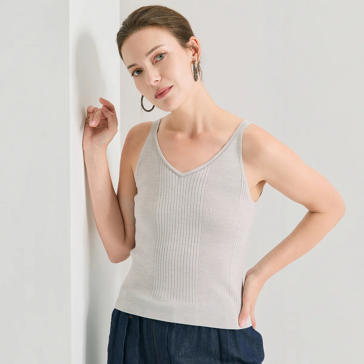 BL3611478 Elegant Wool Silk Tank Women’s V-Neck Knitted Cami Premium Soft Silk Woolen Base Vest Clothing