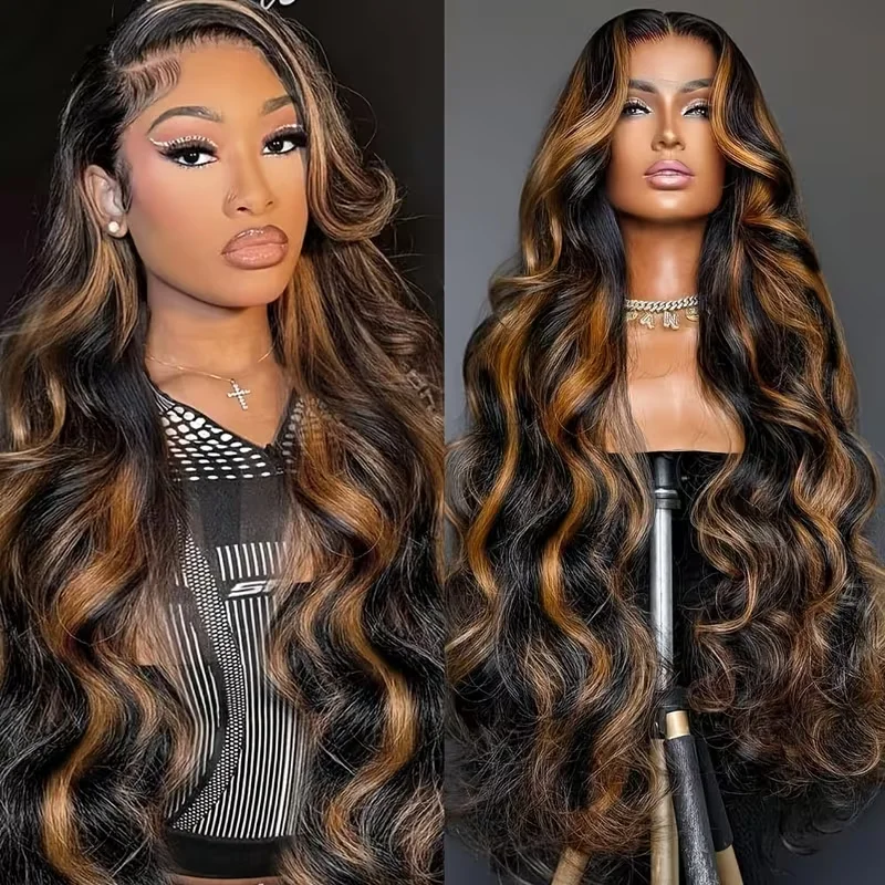 Body Wave 1B/30 Highlight V Part Wig 220 Density Loose Body Wave Human Hair Wig V Shape Clip in Half Wigs No Leave Out No Sew In