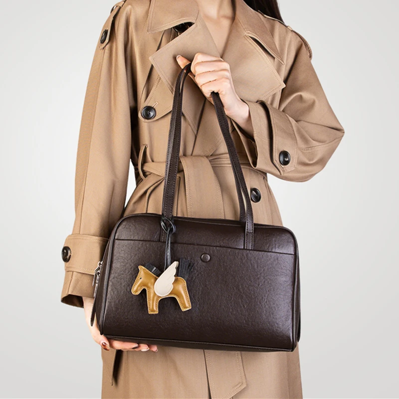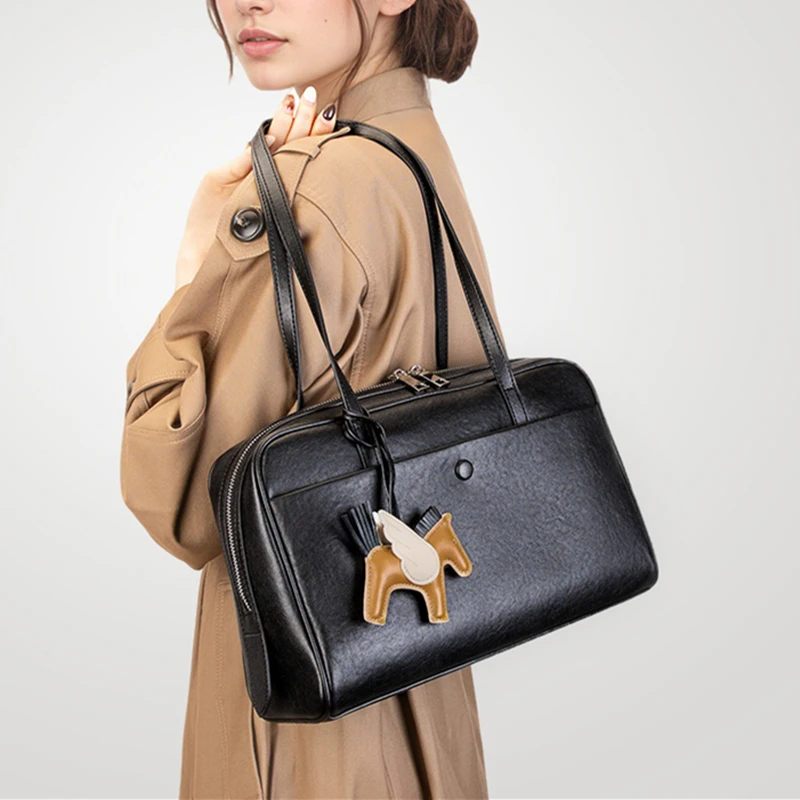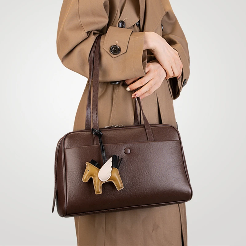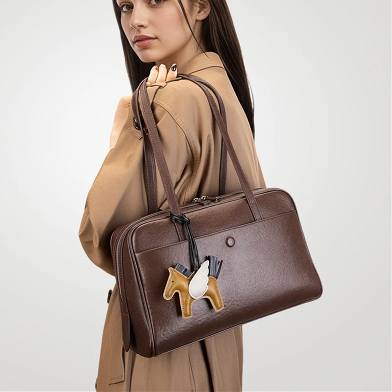 Burminsa Cowhide Genuine Leather Bowling Underarm Shoulder Bags For Women 2025 Luxury Designer Pillow Totes Work Ladies Handbags