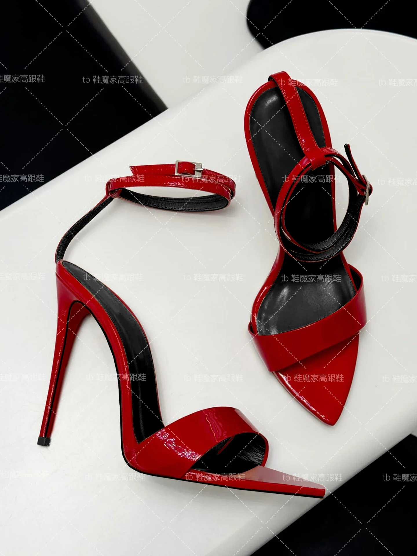 Customized 2025 new sexy high-heeled shoes with pointed toes and exposed toes straight buckle strap, slim heel sandals for women