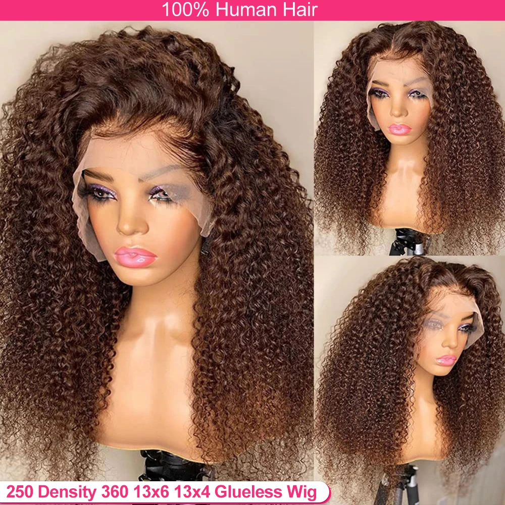 Deep Wave 13×6 HD Lace Frontal Wig Invisible Strap 360 Full Lace Wig Glueless Human Hair Wig Chocolate Brown Lace Front Wig