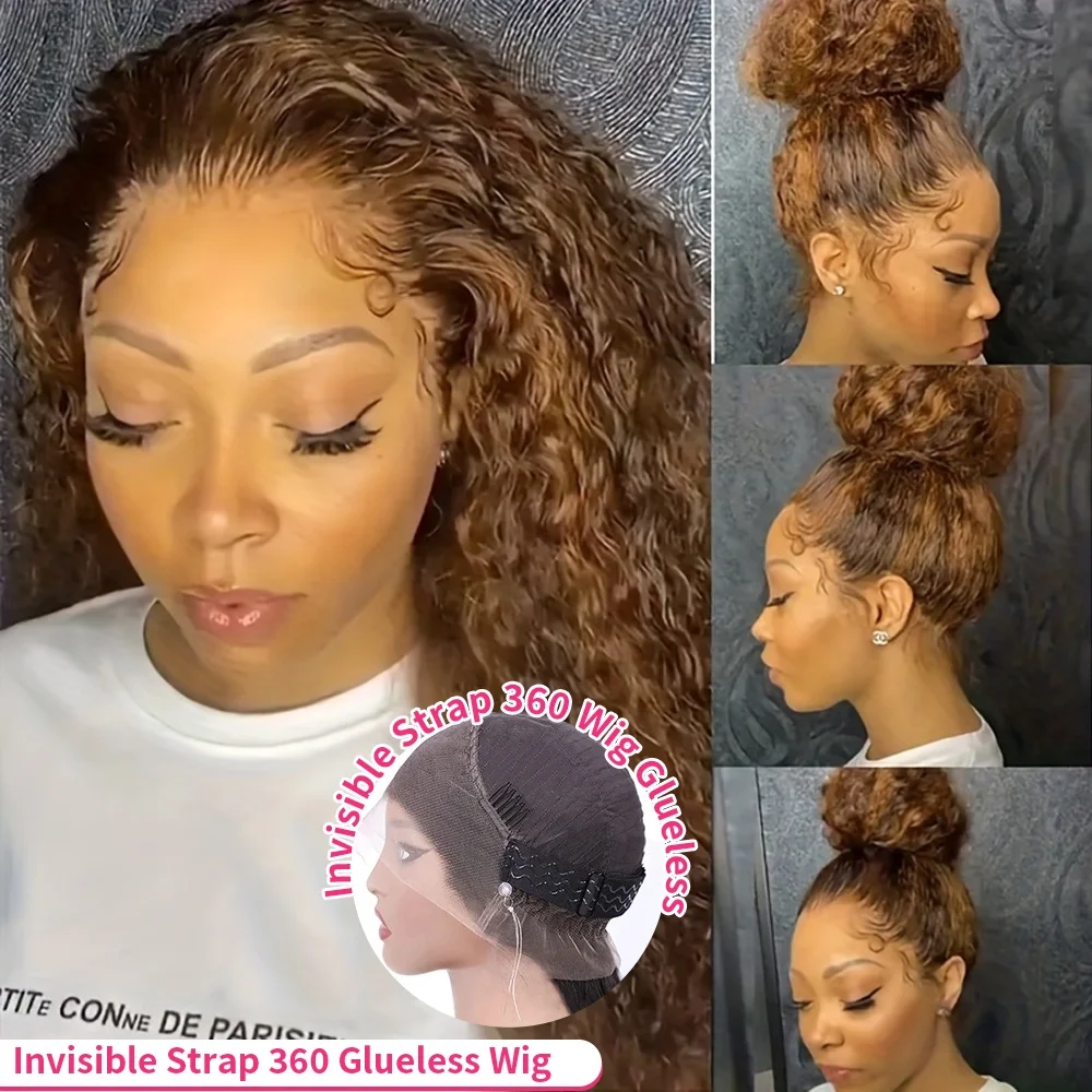 Full Lace Curly Human Hair Wig 360 Invisi Strap Highlight Wig 13x6 Deep Water Wave Frontal Wig for Women 220 Density