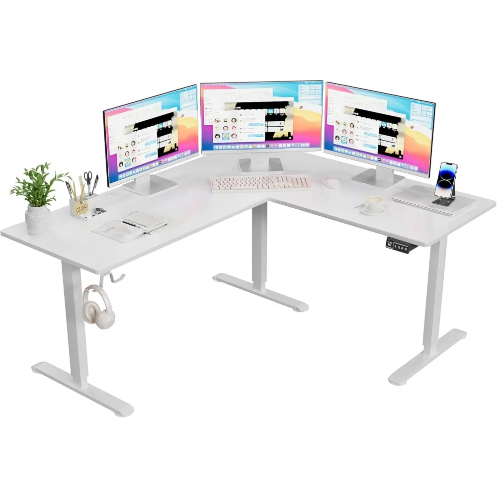 Furmax 63 X55 Inch L Shaped Standing Desk with 2 Preset Heights Electric Height Adjustable Computer Table 2 Hooks & Feet Balance