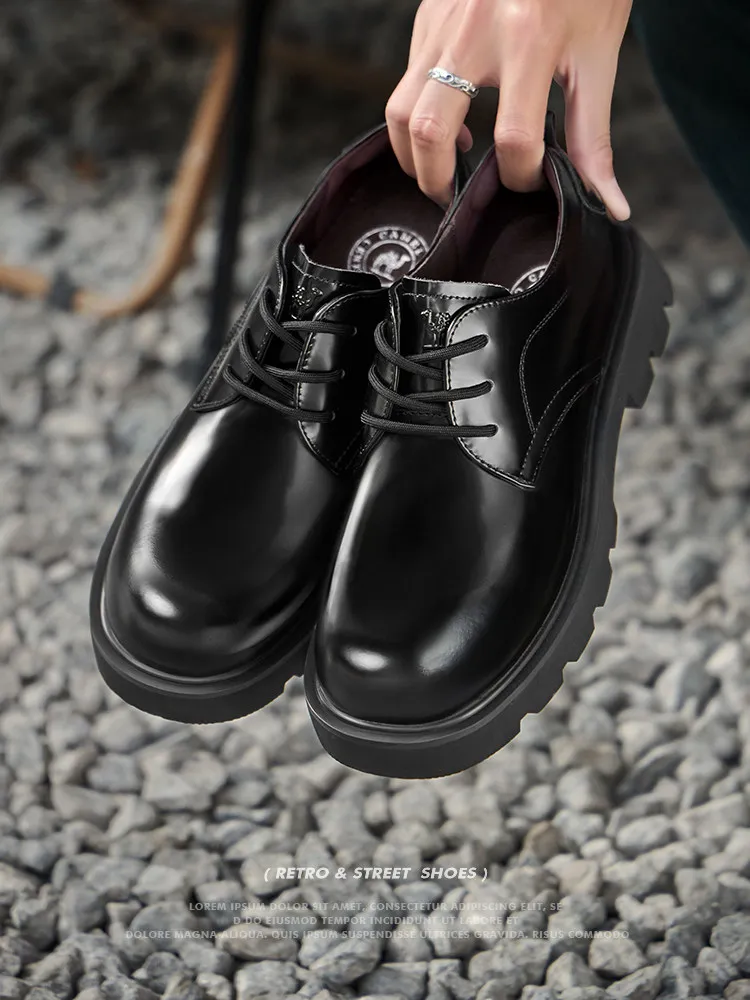 Golden Camel Men’s Shoes Luxury Brand Genuine Leather Thick Sole Round Head Derby Shoes New Business Casual Soft Sole Dress Shoe