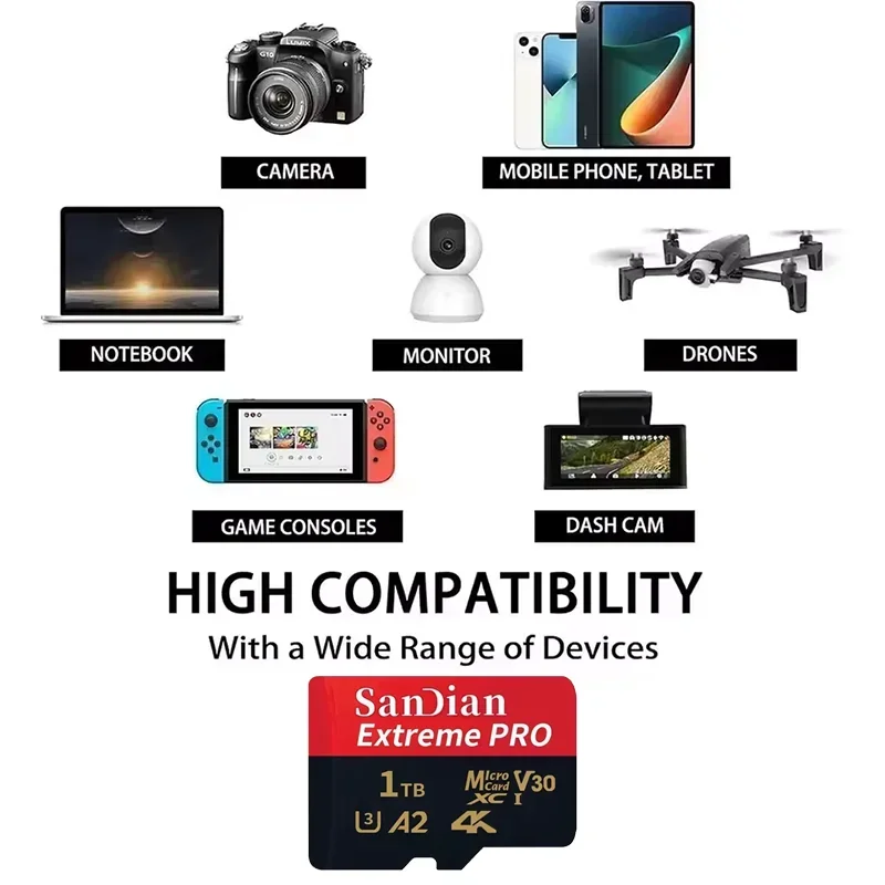 High-Speed Storge SD Card 1TB Original Micro TF Card 128GB/256GB Class 10 High Speed Transfer Memory Card for Camera/Laptop/PC