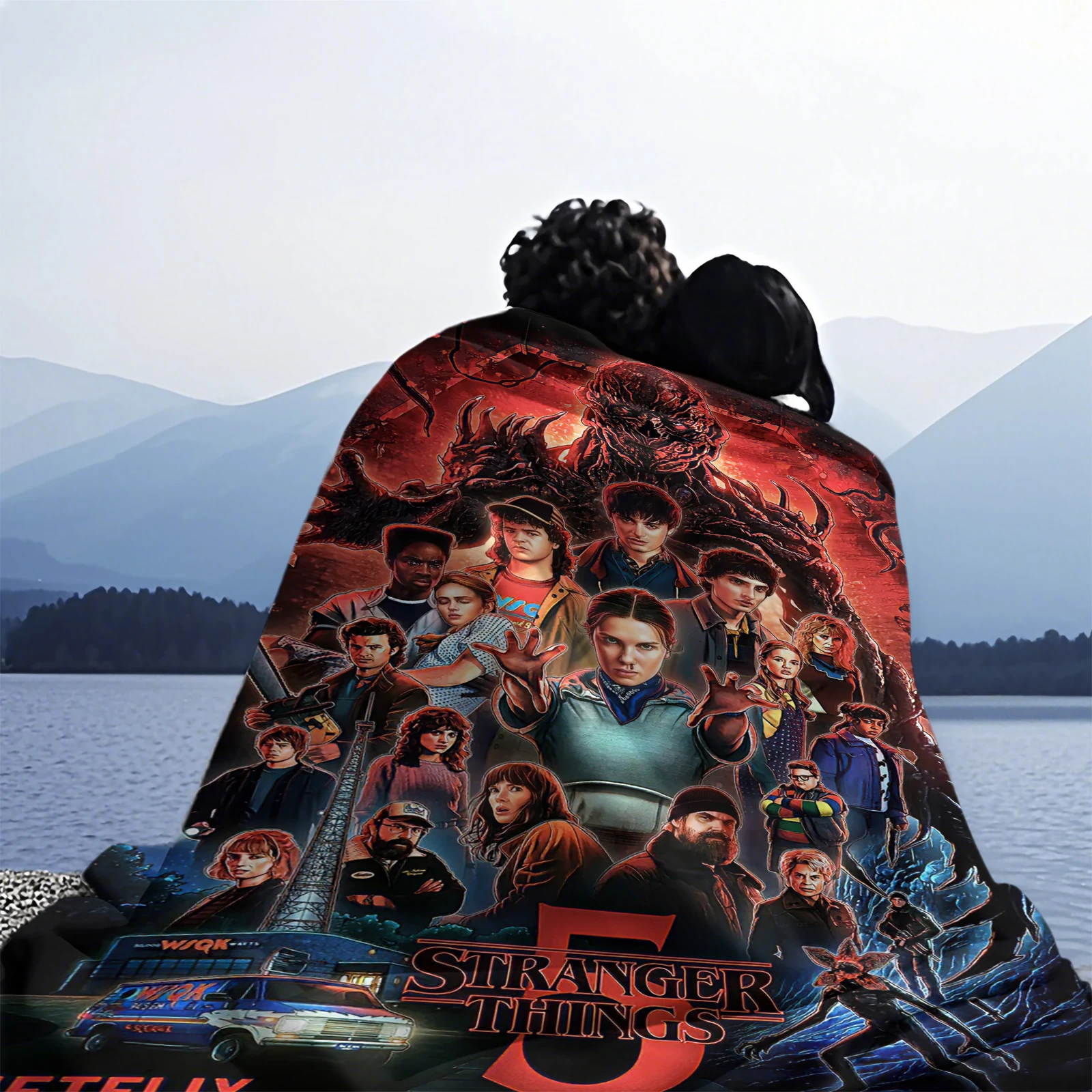 Hot Horror TV Series S-Stranger T-Things Pattern Blanket Soft and Comfortable Sofa Covered Blanket Portable Lightweight Blanket