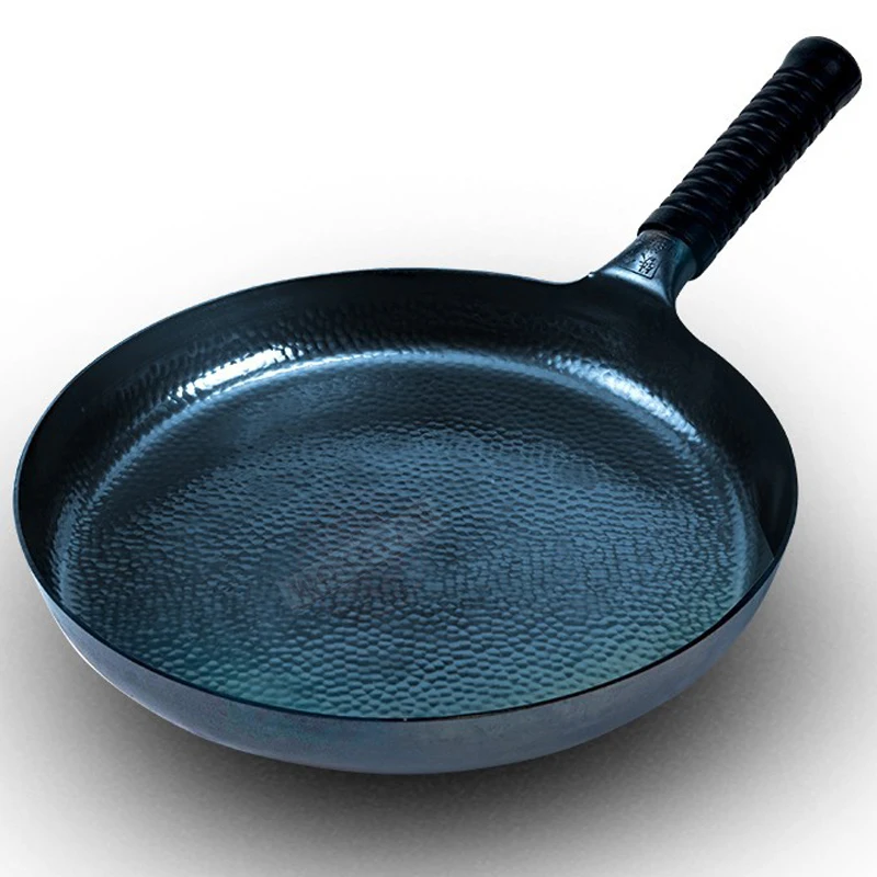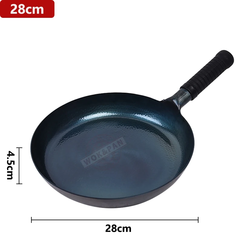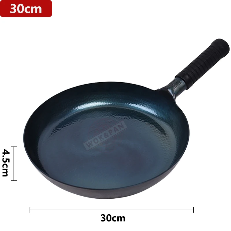 Iron Frying Pan,Induction Compatible,Chinese Traditional Hammered Pan Blue Cooking Wok Kitchen Cookware 26/28/30cm