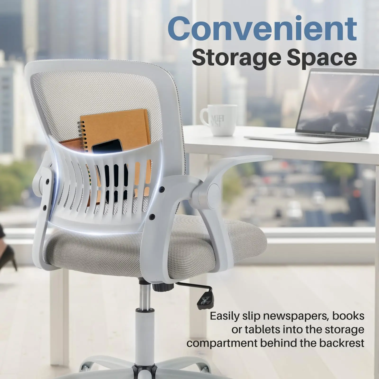 JHK Home Office Computer Chair Ergonomic Mid Back Desk with Lumbar Support 360? Swivel Height Adjustable with Flip-up Armrest