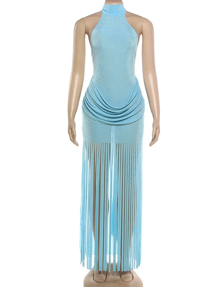 Joskaa Sexy Backless Tassel Hem Dress Woman Hipster Halter Velvet Ruched Patchwork Skinny Party Dress Valentine’s Day Clubwear