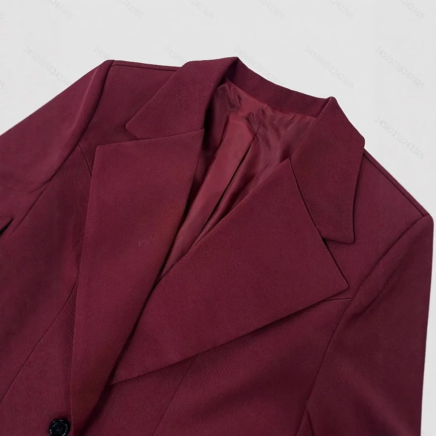 Be the first to review “KIDCRKJ Elegant Women Spring Suit Coat Burgundy Cinched Waist Lapel Collar Slim Female Blazer Coat Instagram-Style Lady Jacket”