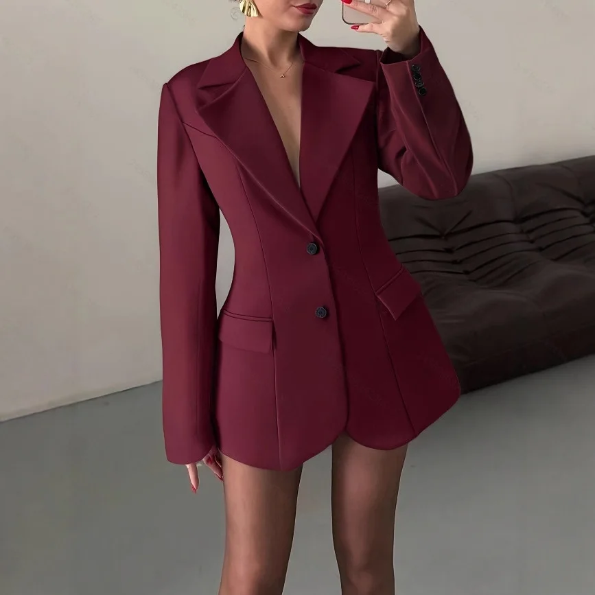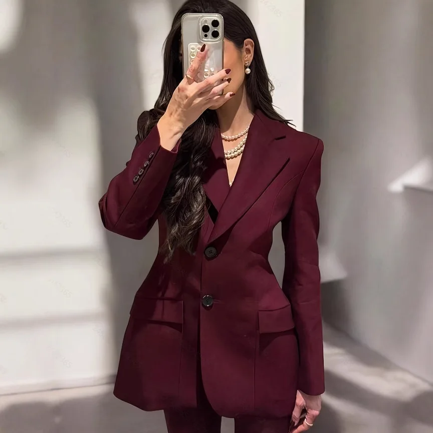 KIDCRKJ Elegant Women Spring Suit Coat Burgundy Cinched Waist Lapel Collar Slim Female Blazer Coat Instagram-Style Lady Jacket