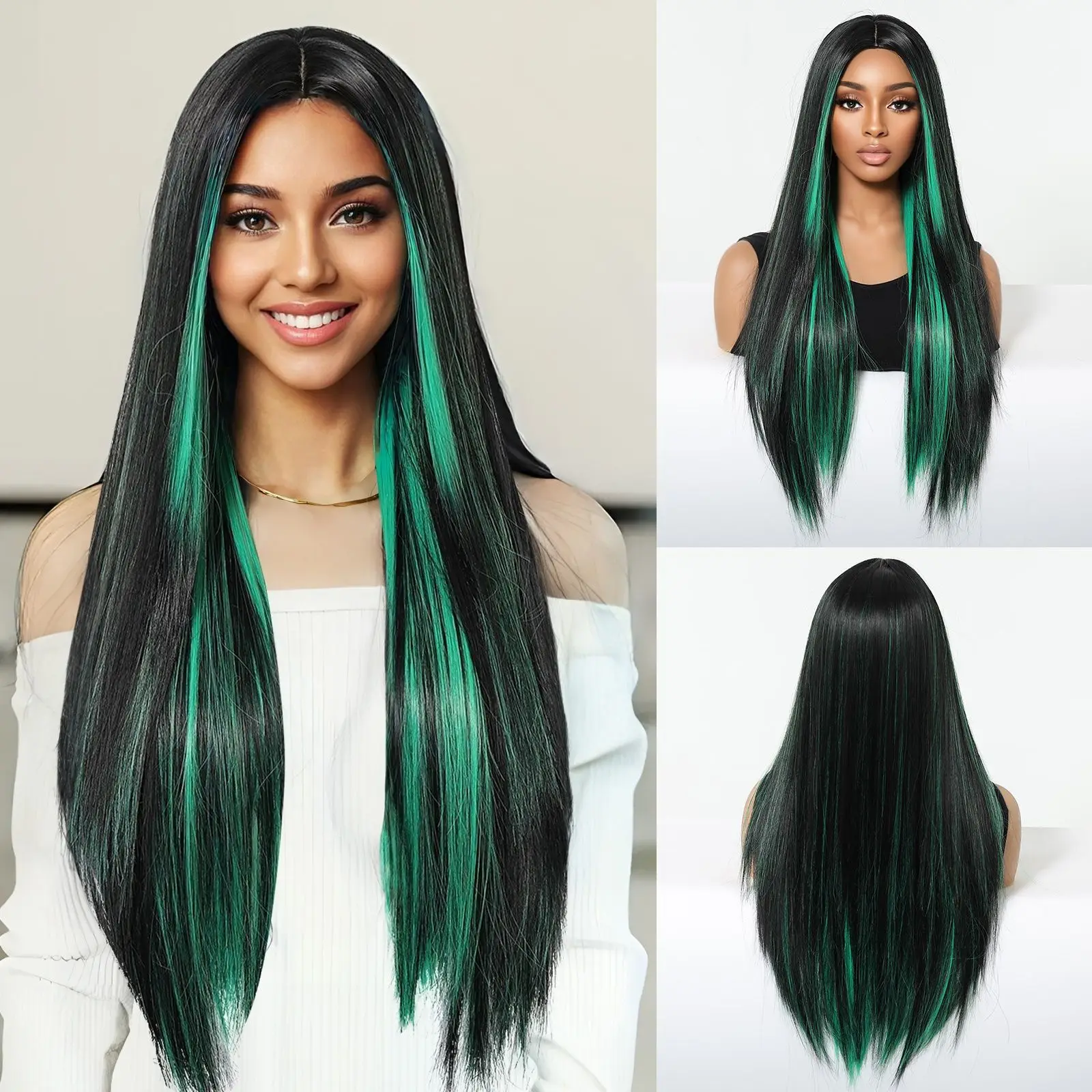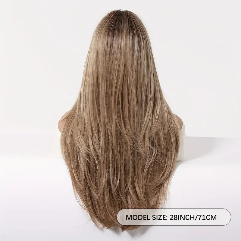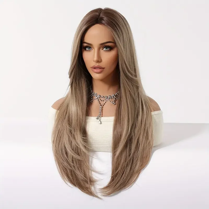Long Ombre Blonde Synthetic Wigs Middle Part Natural Long Straight layering Wigs For Women Party Halloween Cosplay Daily Wear