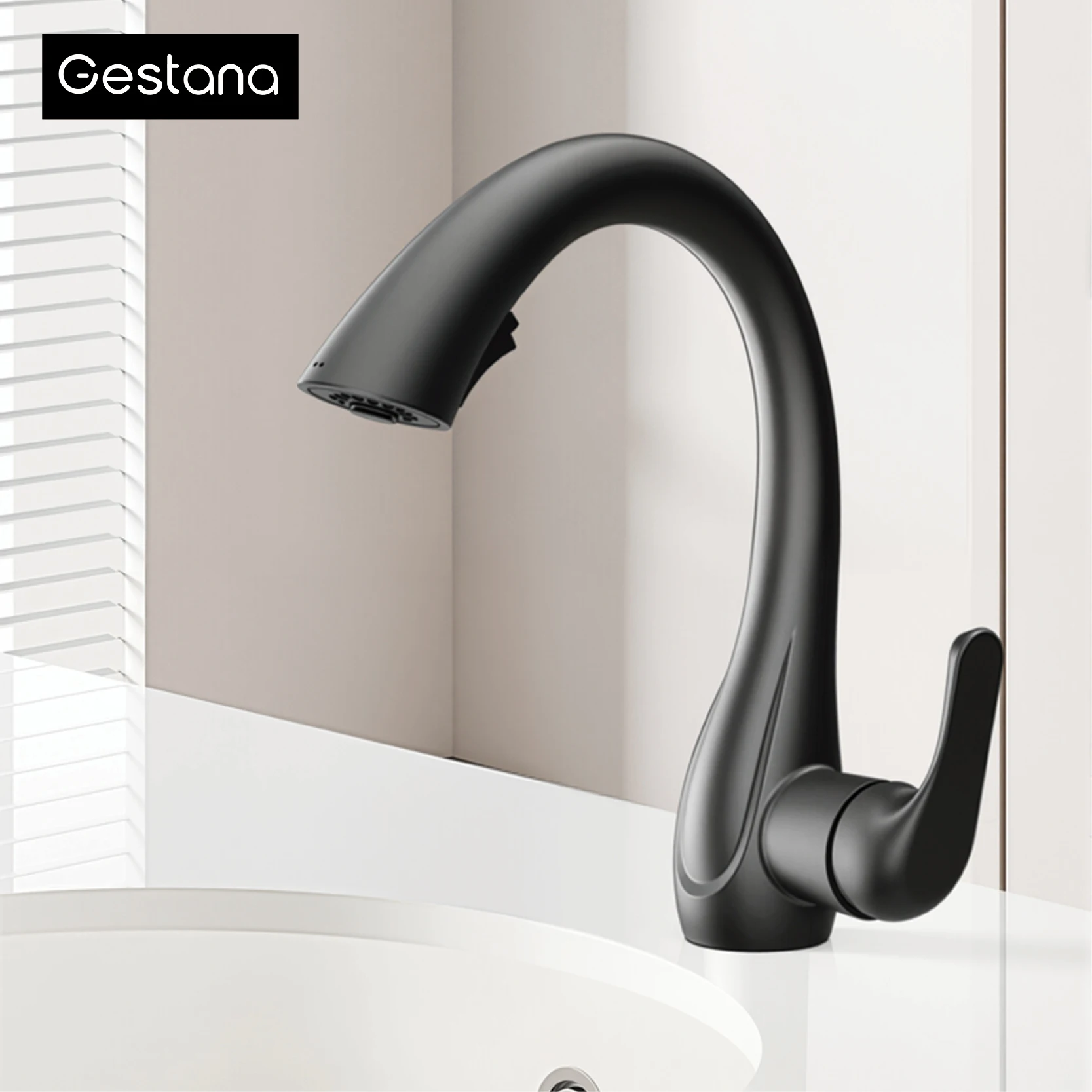 Luxury Gun Grey Brass Kitchen Faucet Touch Control Pull out Single Handle Hot Cold Water 2 Functions Mixer Tap with 360 Rotation