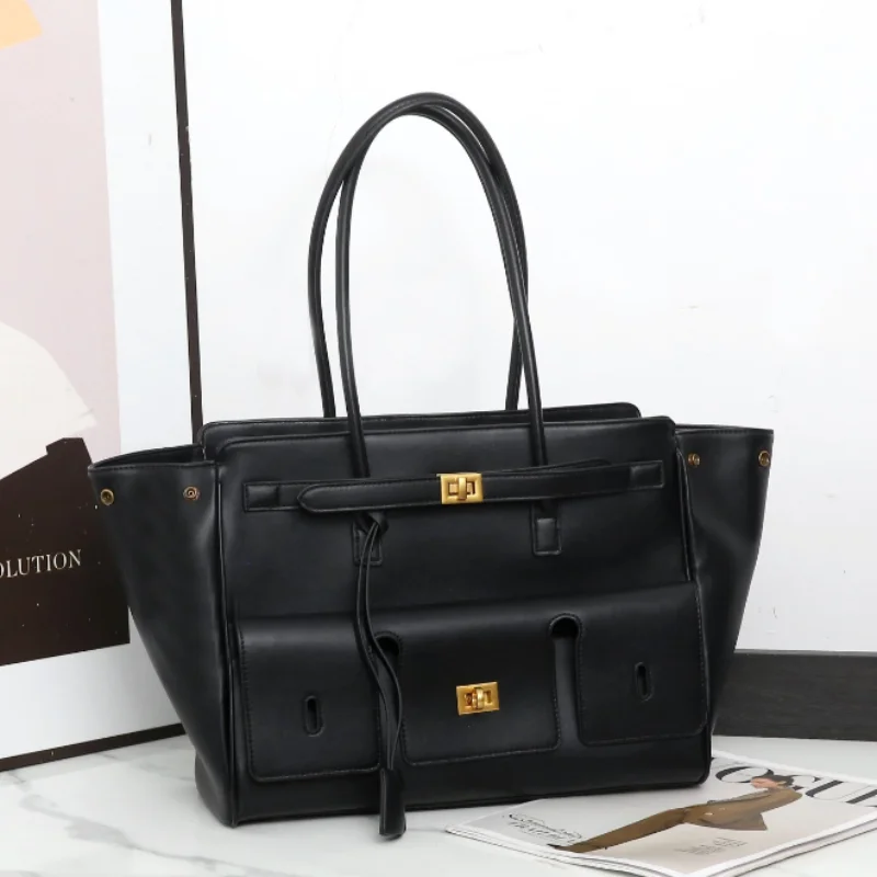 Luxury Large Capacity Wing Bag Black Brand High Quality Leather Casual Silver Gold Lock Tote Bag Trendy Exquisite Shoulder Bag