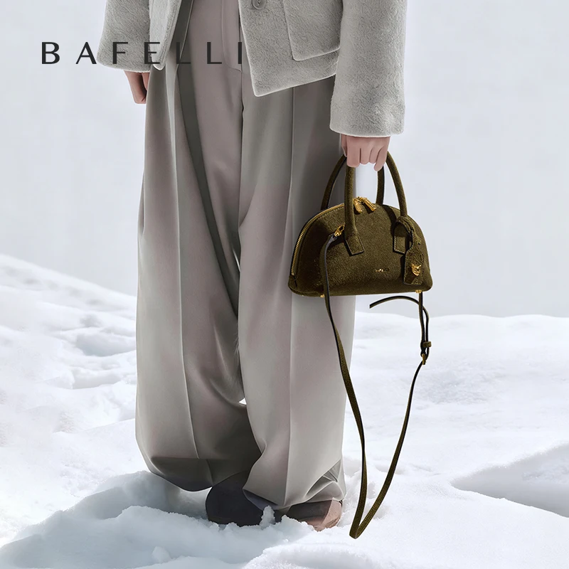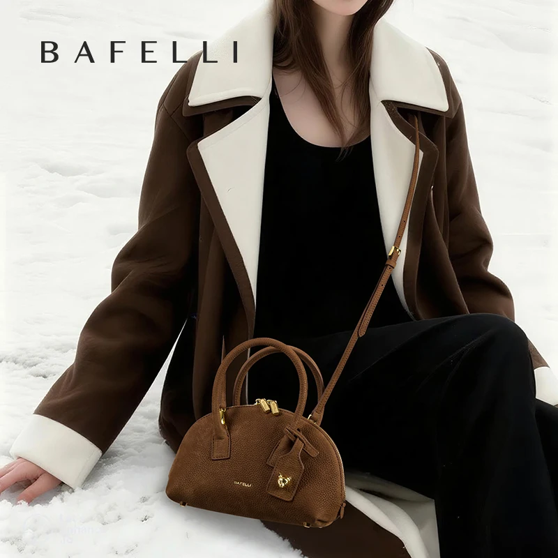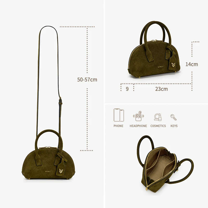 Luxury Velvet Shine Bowling Bag, Premium Genuine Leather Crossbody Purse for Women, Top Grain Leather Handbag