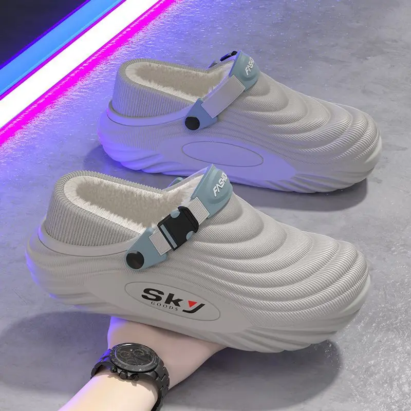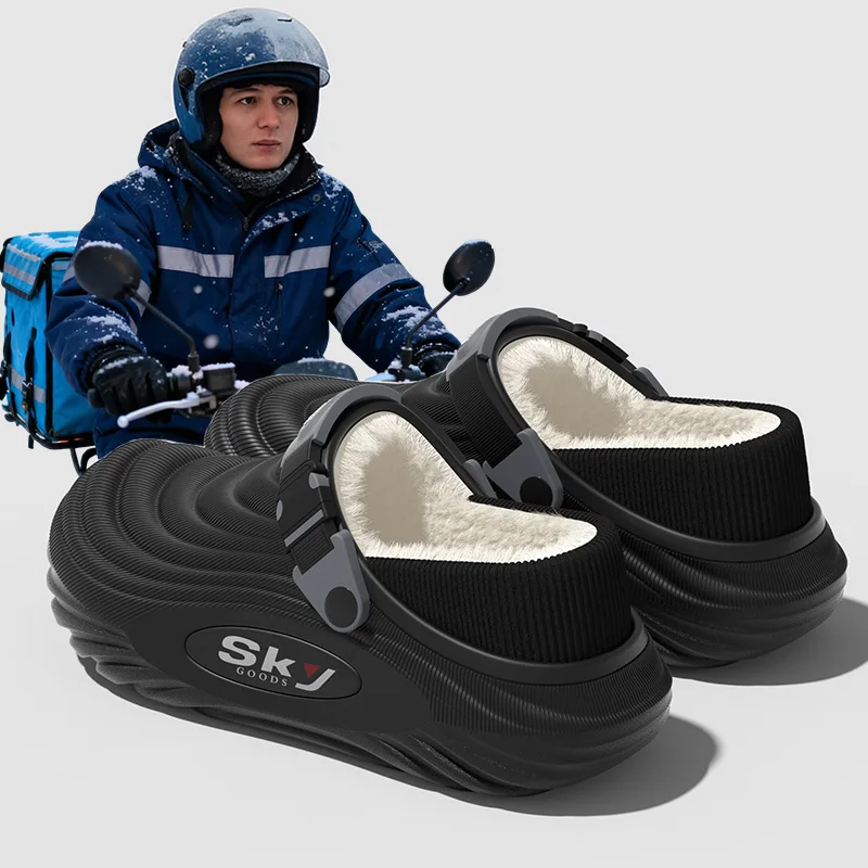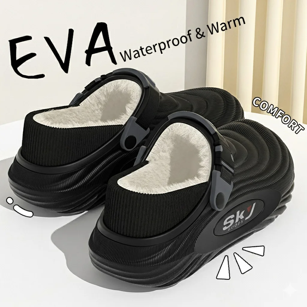 Men’s Winter Warm Waterproof EVA Slippers Thick Sole 4CM Anti Slip Fur Lined Indoor Outdoor Shoes For Comfort