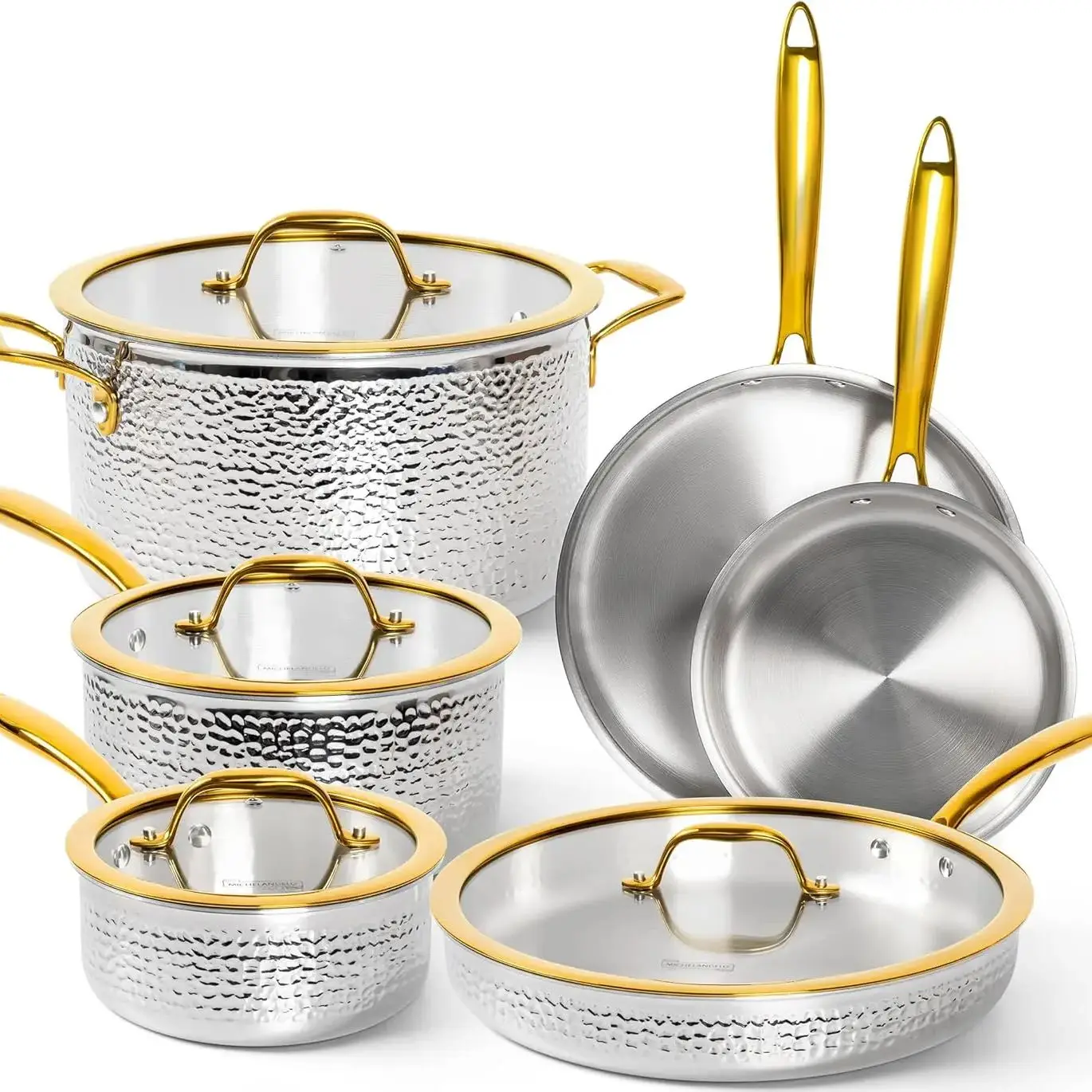 MICHELANGELO 10 piece set of stainless steel pot Frying Pans Non-coated Cookware Household Kitchen Pots