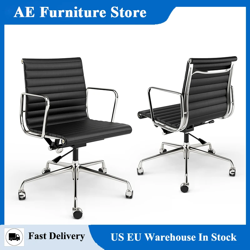 Mid Back Classic Genuine Leather Office Chair Ergonomic Office Chair Adjustable Swivel Leather Computer Desk Gaming Chair