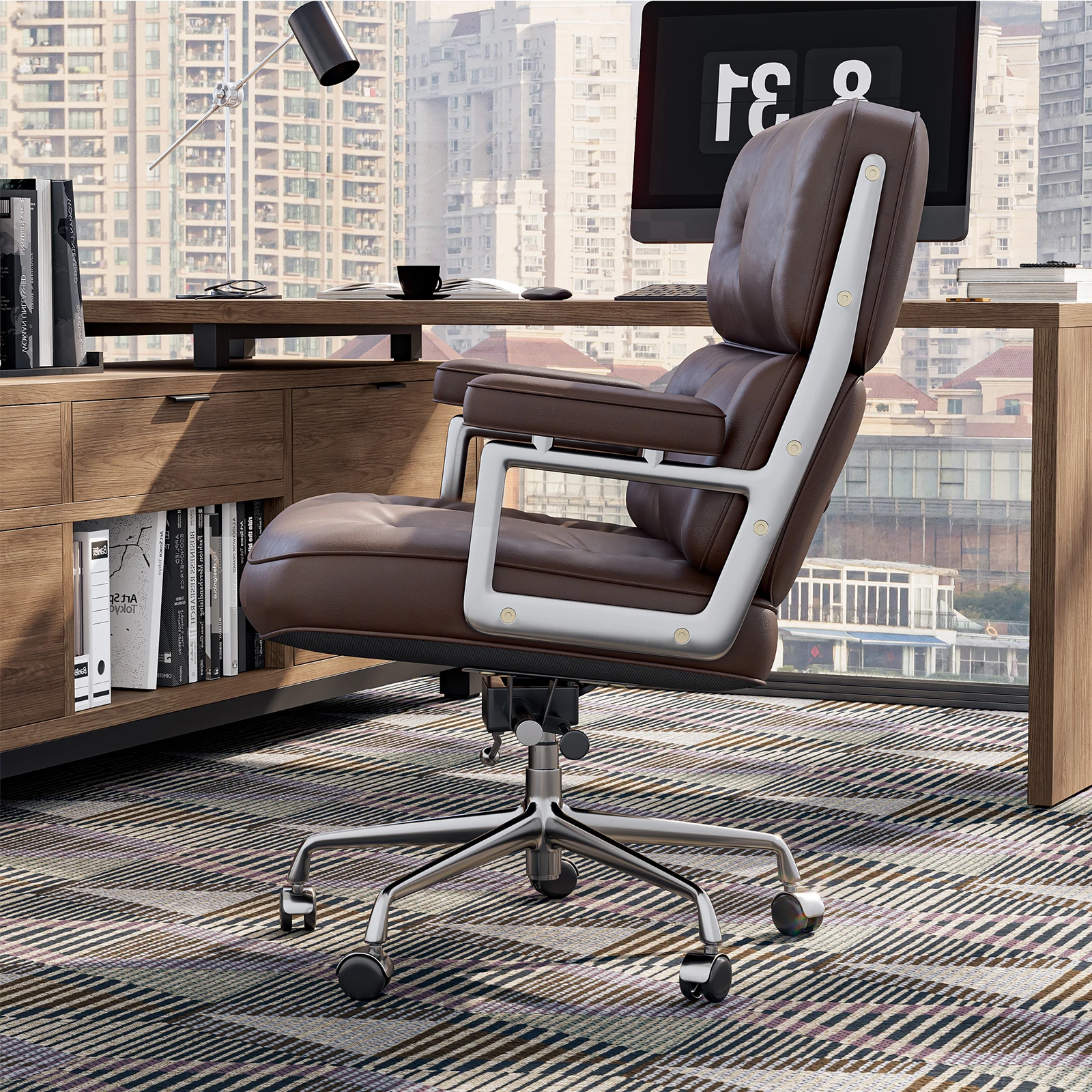 Mid Back Genuine Leather Office Executive Desk Chair With Thickened Backrest and Ergonomic Swivel Computer Chair