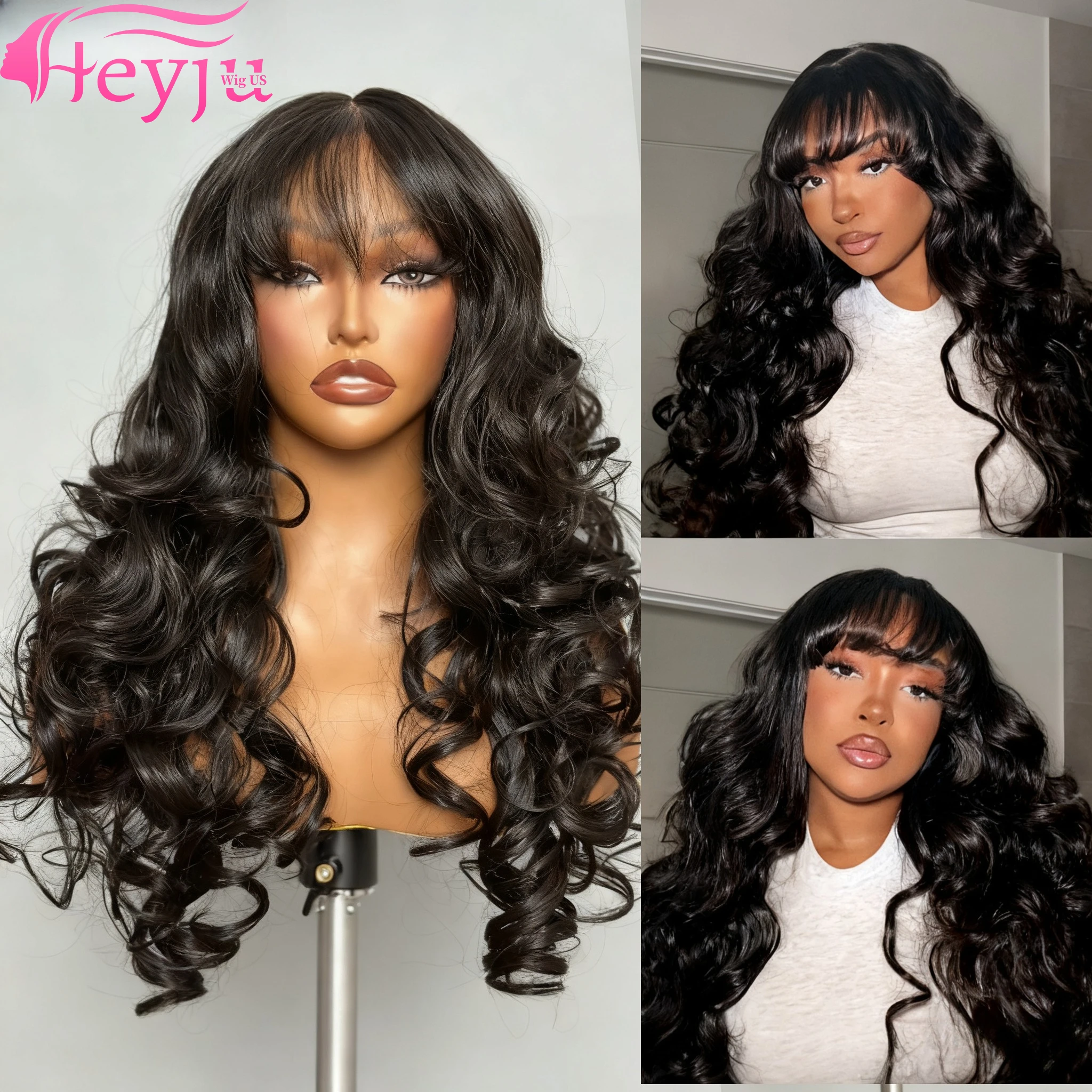 Middle Part Body Wave Human Hair Wig With Bangs for Black Women 3×1 Lace Wigs 230 Density Brazilian 30 36 Inch Wigs for Women