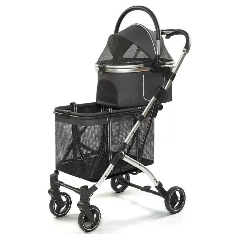 New Style Double-layer Pet Cart Strollers Lightweight Foldable Dog Cat Trolley Travel Stroller Small Pet Outdoor Cart