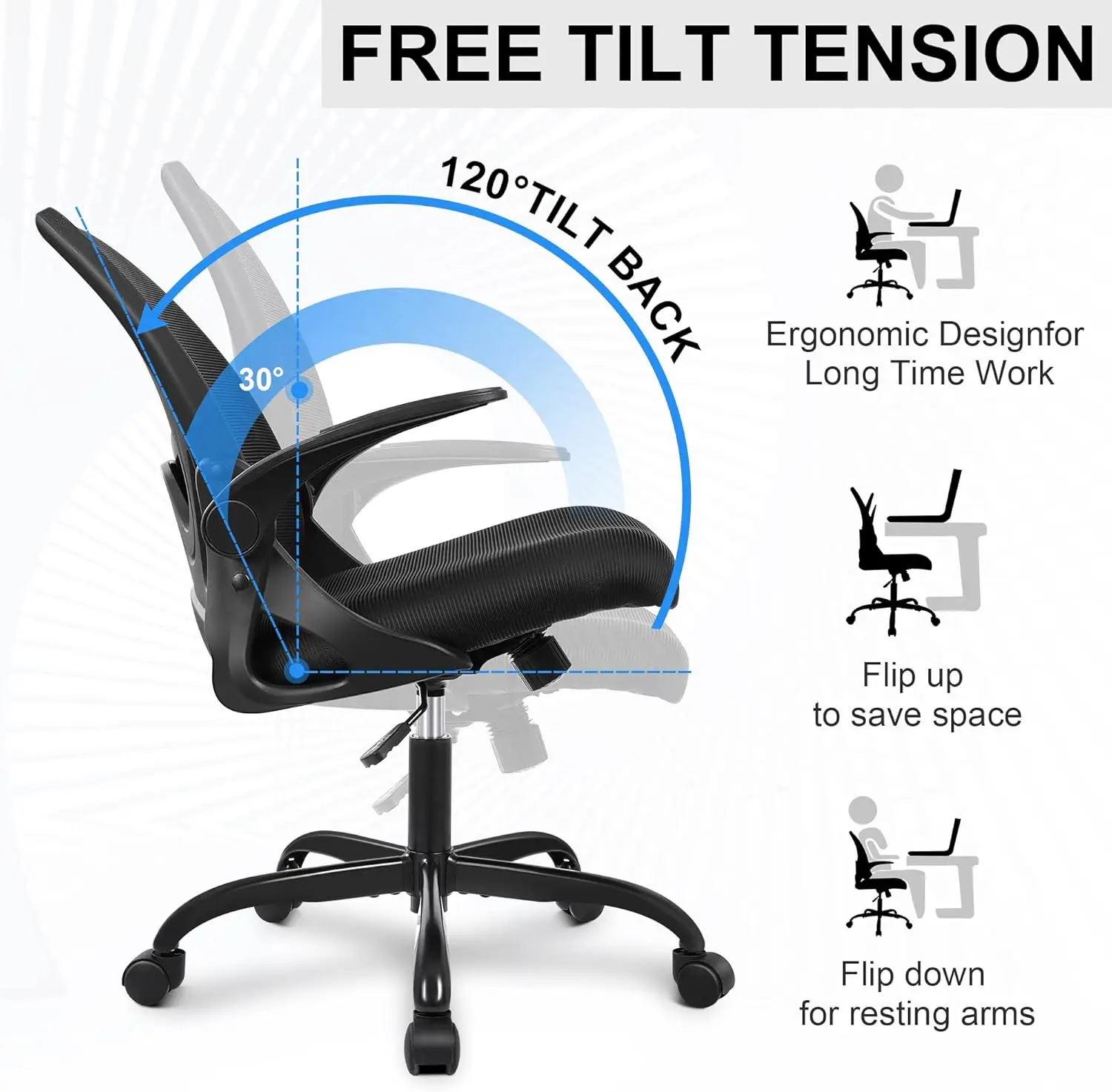 Office Chair Ergonomic Desk Chair with up Armrests Swivel Breathable Desk Mesh Computer Chair with Adjustable Lumbar Support