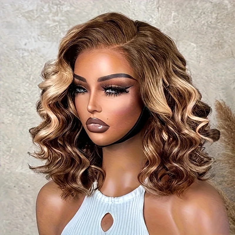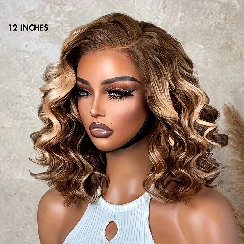 Ombre Highlight 4/27 Deep Wave Lace Front BOB Wigs Human Hair Pre Plucked 13×4 HD Wear And Go Short Curly Lace Frontal BOB Wigs