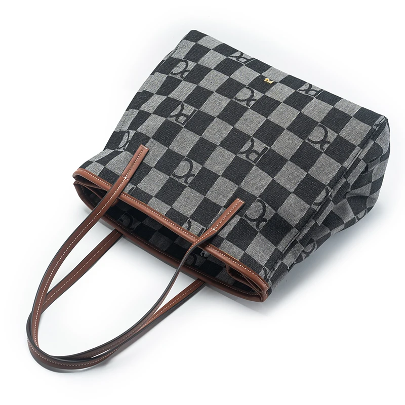 PG Lady Shoulder Bag Denim Checkerboard Design Light Luxury Large Capacity Simple Trendy Cool Texture Daily Commute Handbag