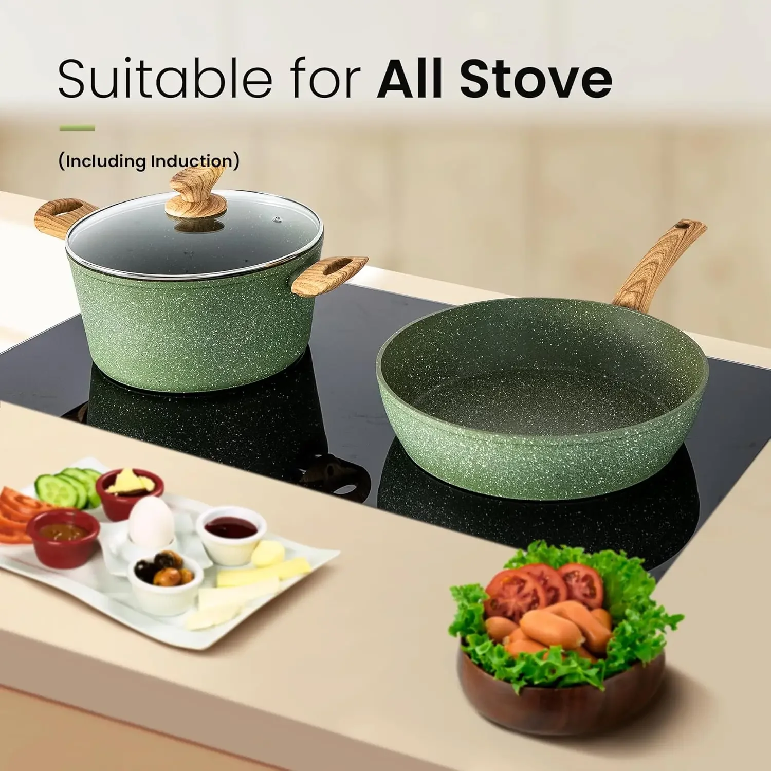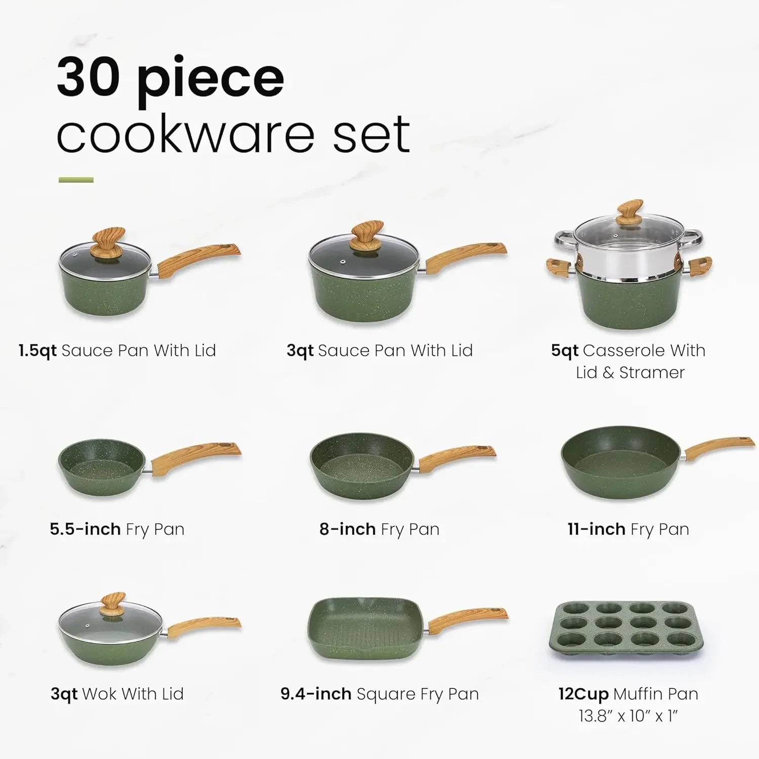 Pots and Pans Set Nonstick, 30 Pieces Induction Kitchen Cookware and Bakeware Sets, Green Granite Coating Cooking Pans Set
